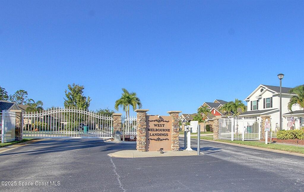 Desirable Gated West Melbourne Landings home. Very well-maintained. Freshly painted exterior and pool deck. Beautiful Salt Chlorinated Pool. Quaint screened in front porch. Kitchen has wood maple cabinetry and granite counters, open to family room. 3 Bedrooms with great closet space. Primary bedroom has its own ensuite. 2023 Roof and 2022 AC. Screened in front porch and pool lanai.