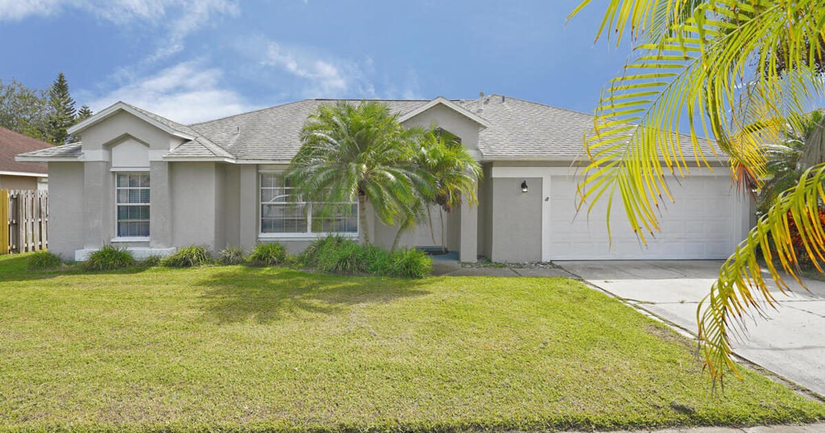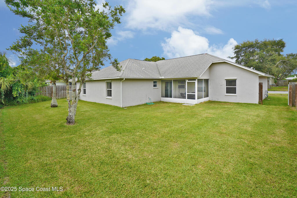 This move-in ready home is situated perfectly off of Lake Washington Rd. with only a few minutes to EGAD, the beaches & I95. Excellent floor plan, covered patio , New roof to be added before closing. Cathedral ceilings offer aesthetic benefits of elegant design and spaciousness as well as functional perks such as improved air circulation and versatility of lighting options. LOW HOA of $150 A YEAR! Vaulted Ceilings , 1846 Sq. Ft. of Living Space. Bring your pets, large fenced in backyard. Plenty of room for your dream pool. split floor plan offers privacy for the primary bedroom including his + her own walk-in closets + large bathroom. Bedrooms 2 + 4 are located on the opposite side of the home. This home is very well maintained & loved. Peaceful backyard encompassed by attractive fencing as well.