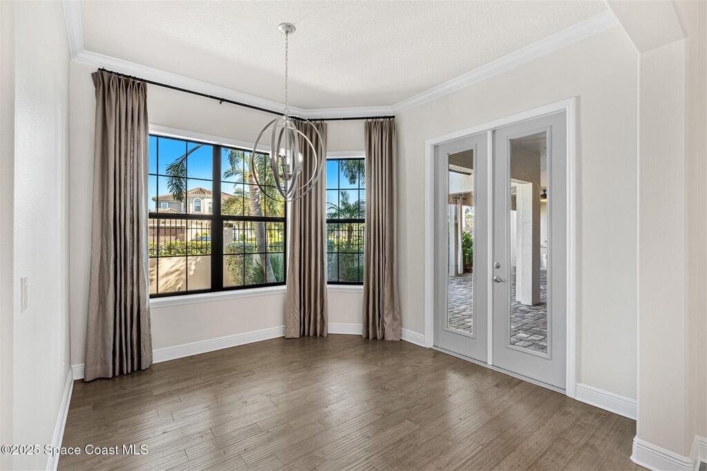 A standout in Viera's sought-after Reeling Park neighborhood, this spectacular 4/5 former model offers over $200K in contemporary upgrades and luxurious living spaces. As you enter through the foyer and pass the office, you're greeted by bright open spaces that draw in soft natural light through the glass front door and windows in the main living spaces. Family gatherings and quiet relaxation are a breeze in the main living space, featuring an electric fireplace and views to the courtyard. The modern kitchen features stainless steel appliances, gas cooktop, vented hood, white cabinetry, quartz counters, and a walk-in pantry. Step outside through the French doors to find a breezy, covered retreat equipped with paver flooring and a summer kitchen, perfect for summertime entertaining. The first-floor primary suite includes an incredible walk-in closet and a spa-like ensuite bathroom with glass and tile shower and soaking tub. . Upstairs, enjoy function and flexibility SEE ''MORE''