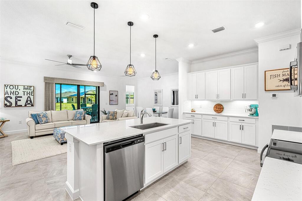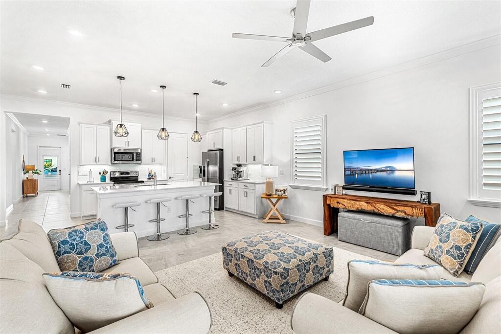 Stunning, two-year-old, 3 bedroom plus study, 3 1/2 bath, waterfront home in Bridgewater, Viera's popular gated 55+ resort style community. All three bedrooms are en-suites, making the Key Largo the most coveted floorplan! This meticulous, barely lived in home is loaded with extras including IMPACT WINDOWS and SLIDERS, plantation shutters and crown molding throughout, tile floors (no carpet!), screened lanai, luxury bath package, LED's in all bedrooms and great room, ceiling fans, pendent lights and 8' doors. Other ''must haves'' include white kitchen cabinets w/glass tile backsplash, quartz counters in kitchen & baths, and laundry room cabinets! Storage galore with 8 closets, plus a walk-in pantry and a 20'X21' garage! Owner added $13,000 in additional landscaping to enhance this impeccable lake front home! Truly turnkey! May also be sold furnished at an added cost. Unbelievable clubhouse w/ heated pool and spa, movie theater, fitness center, coffee lounge, tennis & pickleball.