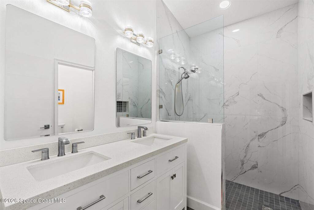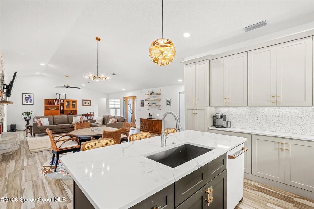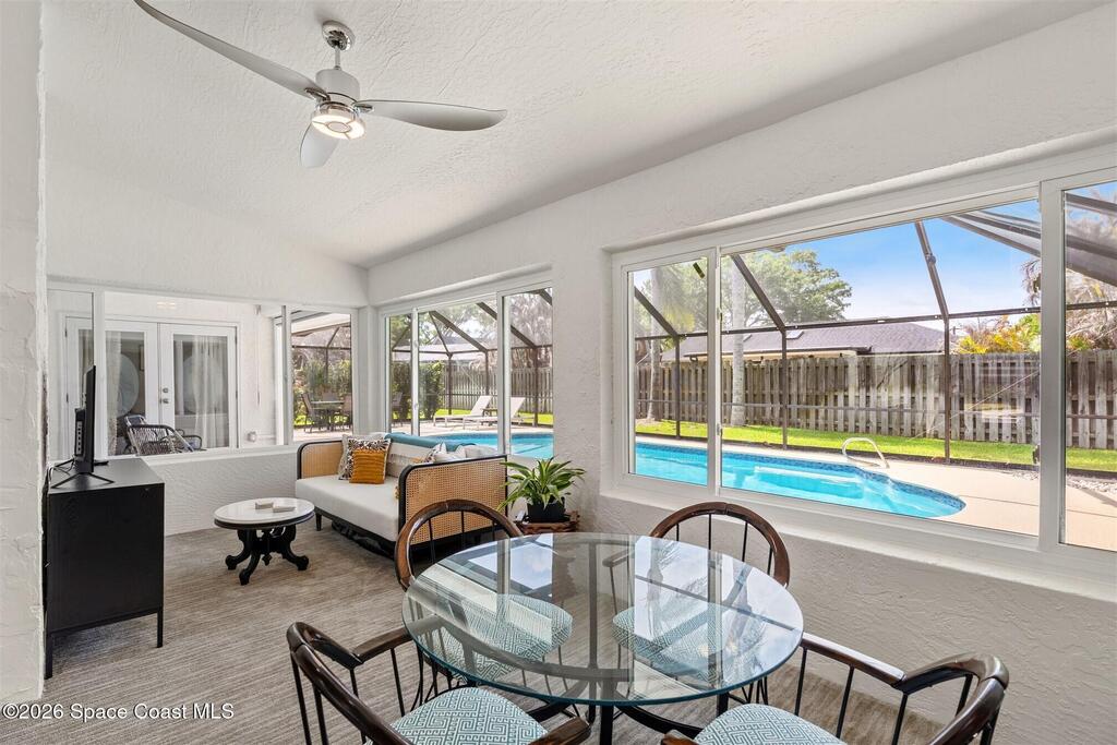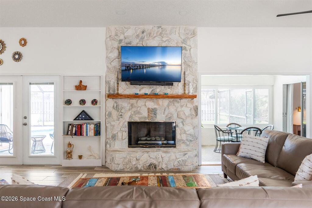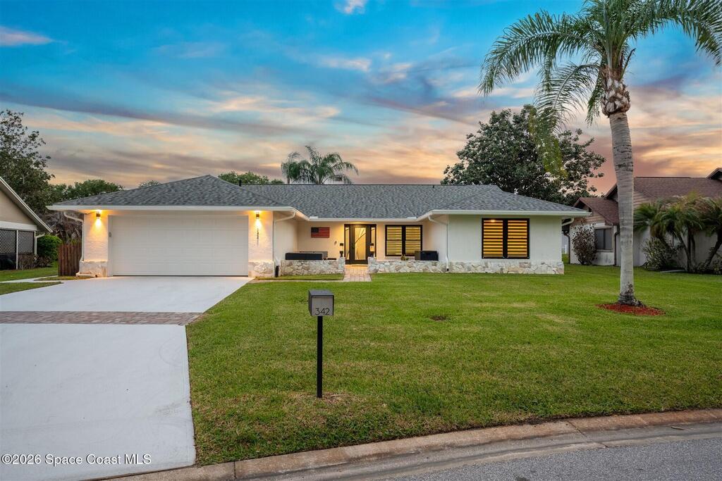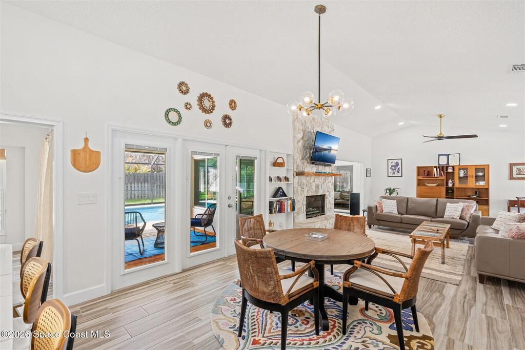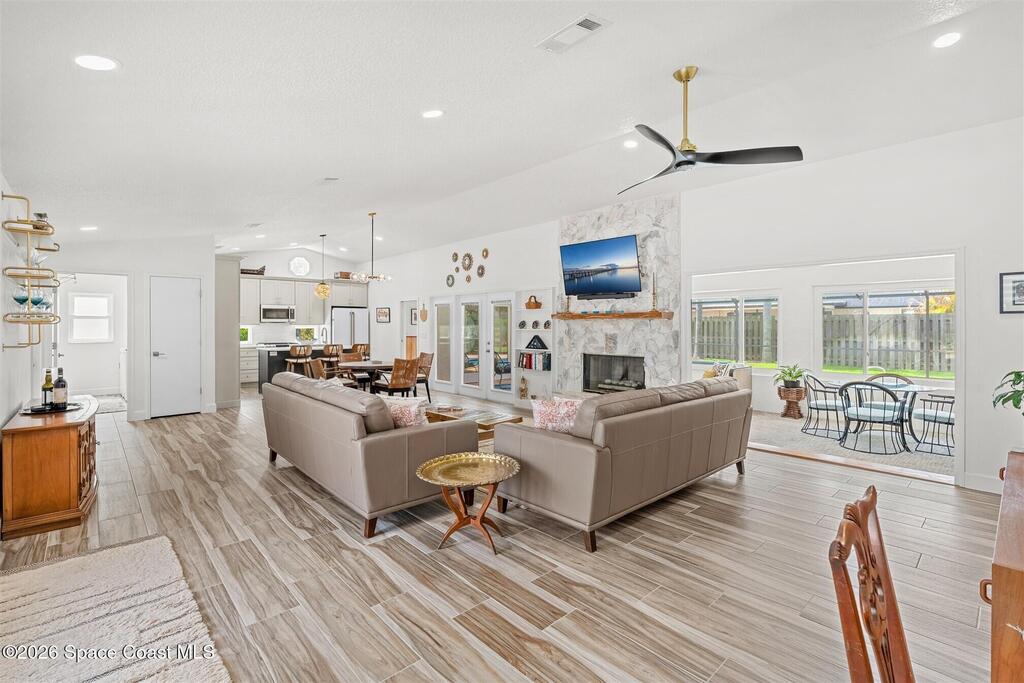 SELLER HAS ASSUMABLE VA MORTGAGE AT 2.25%. Located in the highly sought-after Crystal Lake community of Suntree, this fully remodeled, move-in ready 3-bed, 2.5 bath pool home with a 2-car garage offers the perfect combination of modern upgrades, thoughtful design, and long-term peace of mind. From the moment you arrive, the charming paved front courtyard creates a warm and inviting entry, setting the tone for the quality found throughout. Inside, the open floor plan is filled with natural light and enhanced by new flooring throughout, updated baseboards, recessed LED lighting, and designer ceiling fans. The spacious living area features a cozy gas fireplace and flows seamlessly into the dining and kitchen spaces, making it ideal for both everyday living and entertaining. The beautifully updated kitchen serves as the heart of the home, showcasing quartz countertops, new cabinetry, a stylish backsplash, and high-end appliances. A new washer and dryer add convenience, while (more)
