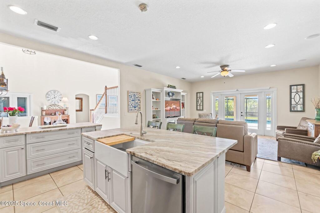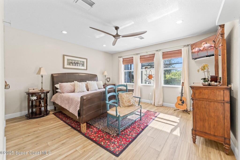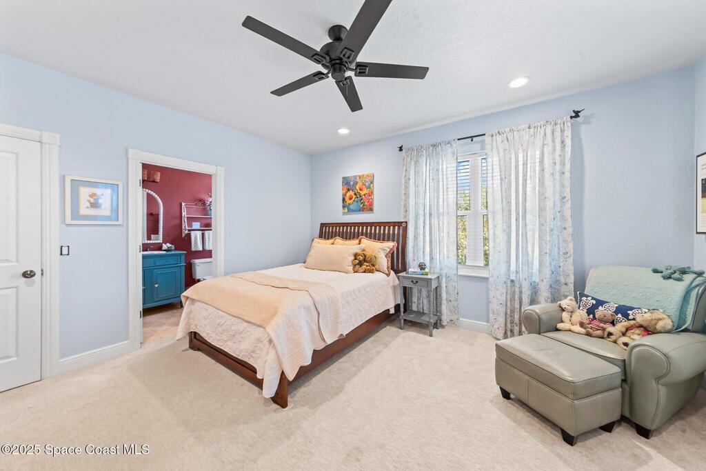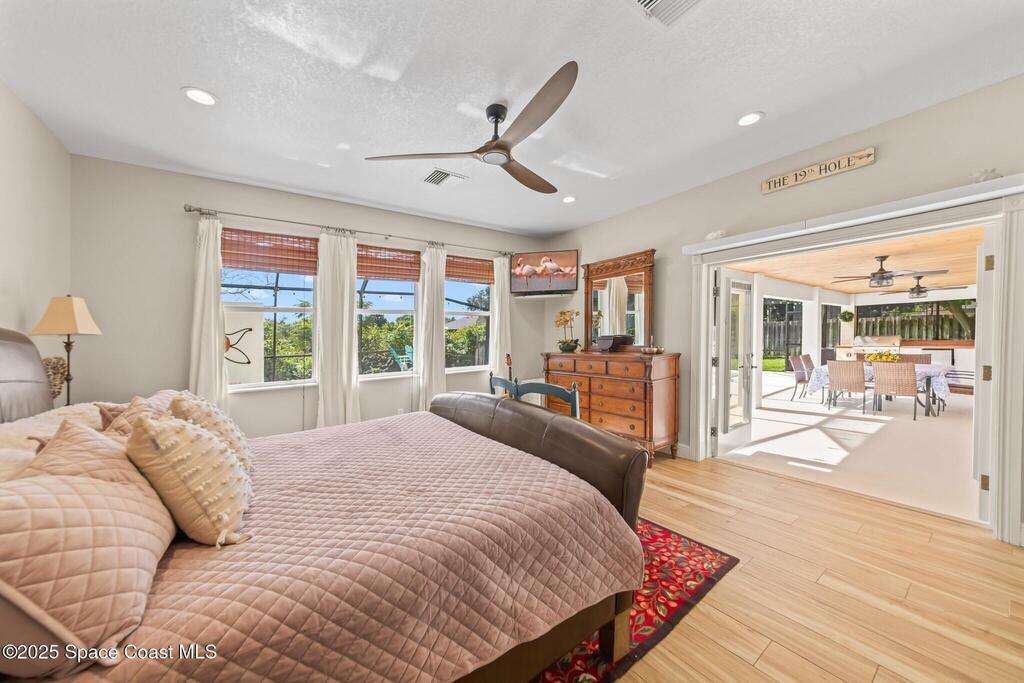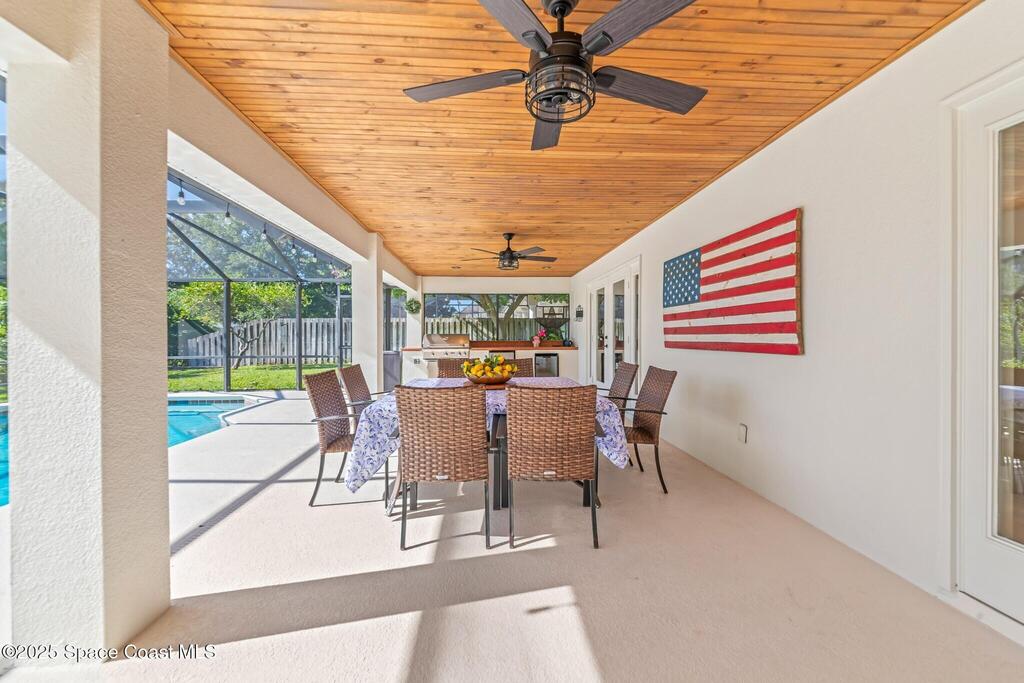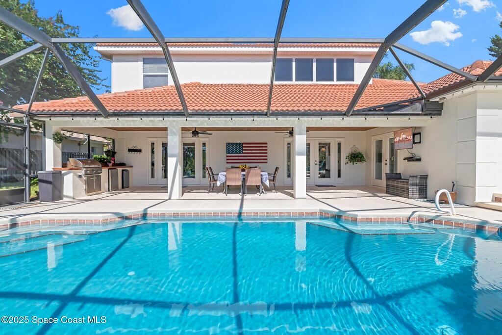 Beautiful pool home in the gated community of Casabella! Step inside the grand two-story entrance and enjoy immediate views of the sparkling pool. The recently updated, open-concept kitchen overlooks the dining area and living room, featuring a spacious island, built-in china cabinets, quartz countertops, and a pantry.The inviting family room offers direct access to the expansive screened pool area, complete with a summer kitchen and outdoor shower perfect for entertaining. A convenient half bath is located downstairs.The primary suite is also on the main floor, with private access to the pool and a completely updated spa-style bathroom. Enjoy a luxurious steam shower and an exceptional walk-in dressing room equipped with a wine fridge and bar. A large bedroom off the entry with French doors makes an ideal study or flex room. Upstairs you'll find three generous bedrooms. Two share a Jack-and-Jill bath, while the third features its own bath with shower.