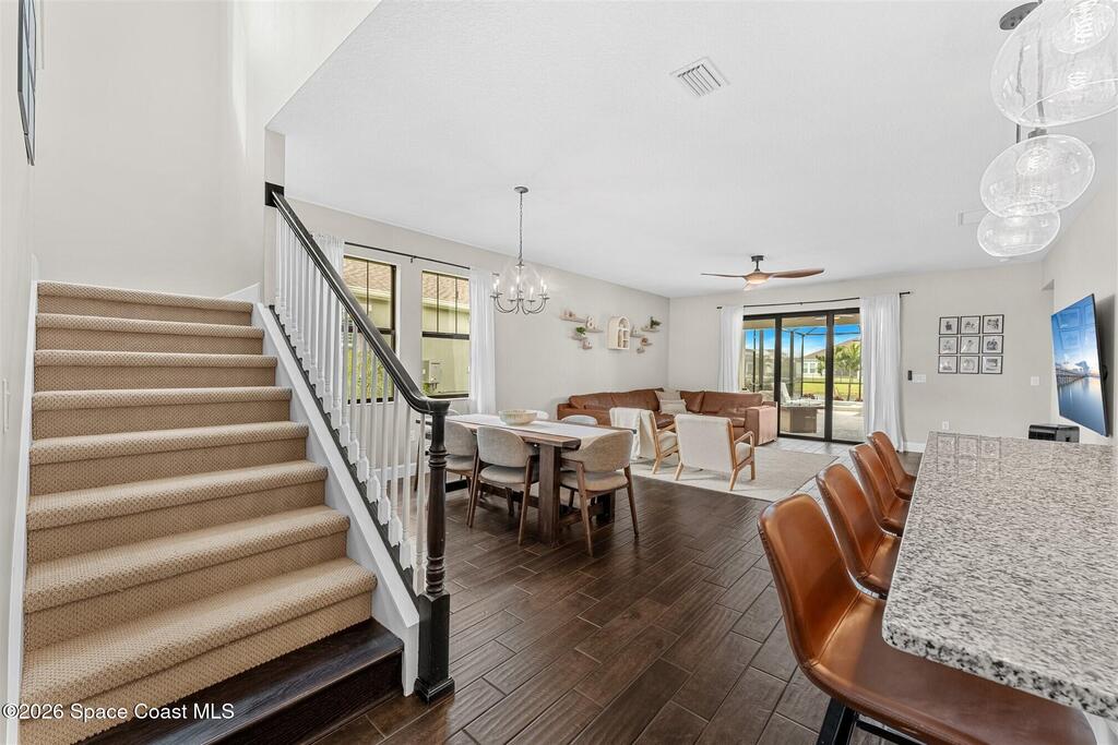 Almost new, waterfront, and move-in ready -- this 2024 Carina in Pangea Park delivers modern luxury, flexible living, and resort-style outdoor space in one of Viera West's most desirable communities. From the open-concept design and gourmet kitchen to the custom pool with spa and serene water views, every detail is thoughtfully designed for effortless Florida living -- all within a highly regarded school district and minutes to everything Viera has to offer. The two-story floor plan features an open-concept layout designed for entertaining and everyday living. The home offers four bedrooms and three and a half bathrooms, plus a versatile Flex Room suitable for a Study or fifth bedroom. Upstairs, a large Loft provides additional living space ideal for a media room, playroom, or family gathering area, while an en-suite bedroom adjacent to the loft creates an excellent secondary living area for multigenerational living, guests, or young adults. The primary suite