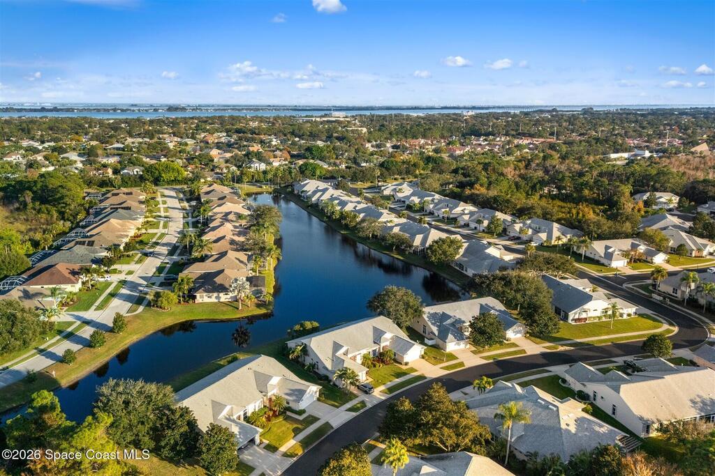 Enter through the community gate of Magnolia Pointe in Suntree and follow around to this 3-bedroom, 2-bath, 2-car garage home with water views! This popular one level floor plan has upgrades that include: granite countertops, new shower in hall bathroom, 140 sq. ft. porch with air (total sq. footage= 1,921), engineered wood flooring by Classic Wood Floors in the main living areas and all bedrooms (no carpet). Enjoy the east facing views and watch the ducks and wildlife on the waterway from the patio, porch, great room or primary bedroom.This half-duplex offers a low-maintenance lifestyle which includes lawn and sprinkler care, roof replacement, exterior painting, exterior insurance and more. A community pool and cabana complete the picture for a great lifestyle in a quiet community near shopping and restaurants.Original owners leaving their much-loved home and community to be closer to children. Roof (2016 by HOA), Water Heater (2014, HVAC (2016)