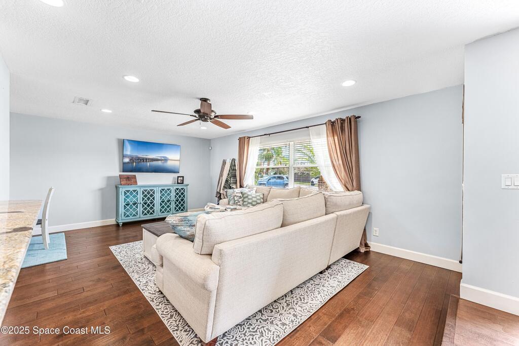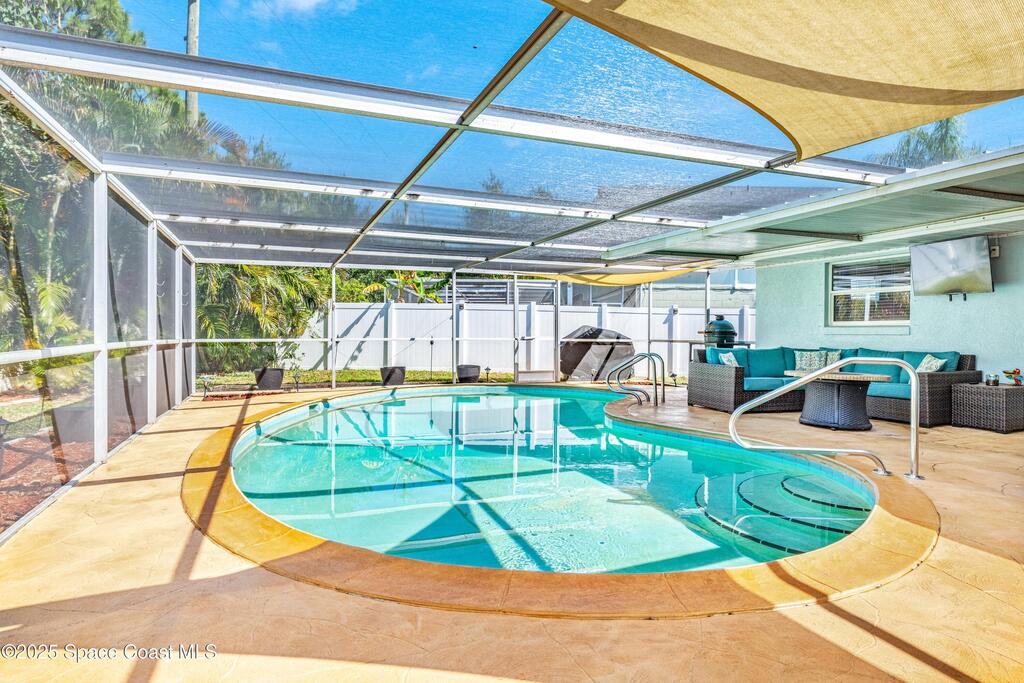 Villa De Palmas! Well appointed home fully remodeled Pool home featuring 4 bed/2 bath and a fenced in Private Yard Waterproof, stain resistant wood floors in the main living spaces and primary suite. HUGE kitchen has soft close, wood shaker cabinets, upgraded hardware, electric range overlooking the family room, double oven, granite countertops with matching backsplash, and more! Primary suite with double sinks and walk-in shower with decorative tile. Massive back yard, with brand new white vinyl privacy fence, and workshop w/ electricity and water. The screened pool has hookups for electric heat (if desired), and the oversized patio is perfect for gatherings and parties! Heated Pool and so much more located close to Shopping, Beaches ,Golf and more!