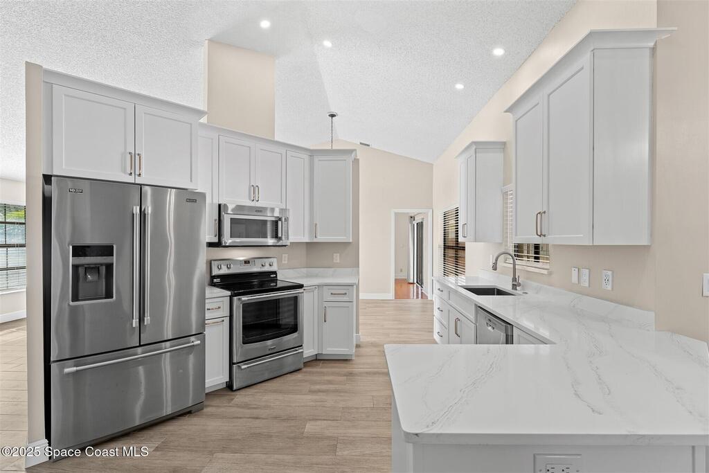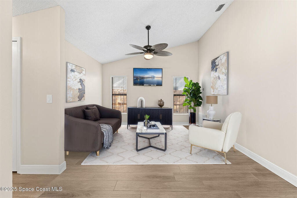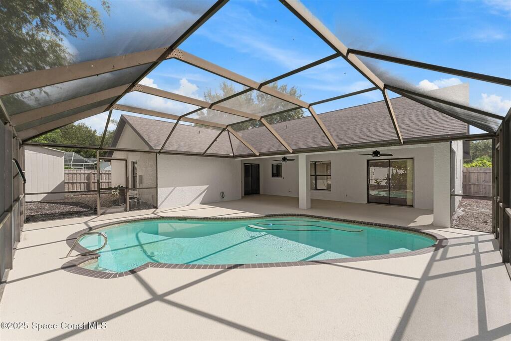 Welcome to this updated 3 bedrooms, 2 bath, pool home with natural gas generator located in a quiet neighborhood with mature trees, lush landscaping and sidewalks. When you enter this house, you will be greeted with vaulted ceilings, tiled floors and a bright, recently remodeled kitchen which features new cabinets and beautiful quartz countertops. The primary bathroom is gorgeous with new cabinets, floors, tile, lighting and offers a large closet that has been finished by a custom closet expert. The interior and exterior are freshly painted; the roof was replaced in 2016. Conveniently located in central Brevard with easy access to Viera, beaches, and Orlando.
