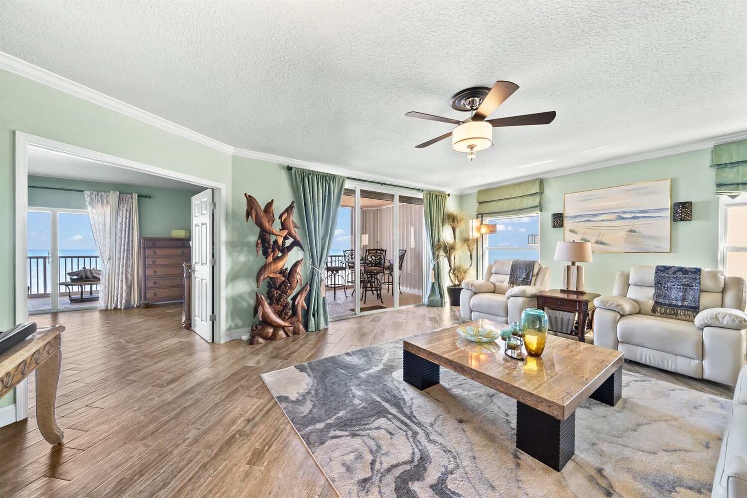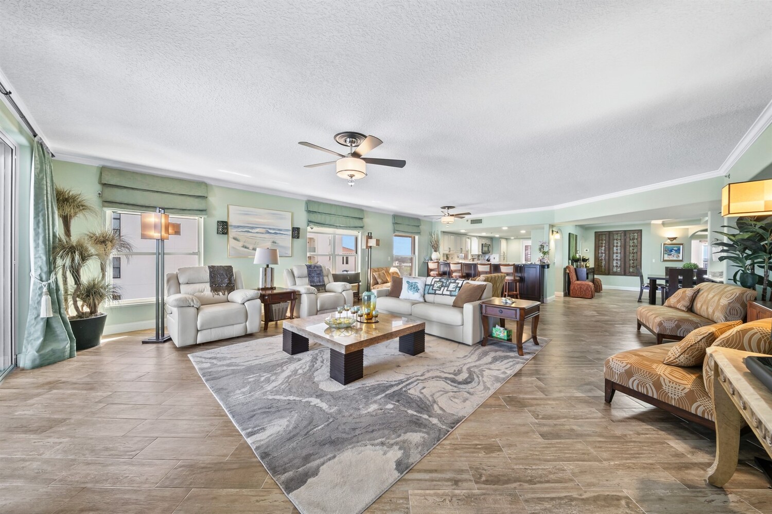 SE- corner unit on the 5th floor of the beautiful Barringer Condominium with stunning, direct ocean views! This spacious, updated residence offers over 2,600 sq. ft. of coastal living with angled wood-look tile throughout and modern, designer paint. The open kitchen features custom cabinetry, designer backsplash, and upgraded stainless steel appliances, including a double-oven range. Additional upgrades include an EcoSmart tankless water heater & water filter system. The primary suite enjoys breathtaking water views, two walk-in closets with professional organizers & a spa-like bath with soaking tub, custom cabinetry & large walk-in shower. Electric hurricane shutters, two garage parking spaces, and private storage are included. The exclusive, owner-occupied Barringer community offers a heated oceanfront pool, private beach access, secured lobby entry, and enclosed garage parking. Centrally located between the causeways! Indialantic's Barringer Condominium is centrally located between the causeways and consists of two seven-story buildings with only 35 total residences. This exclusive, owner-occupied community does not permit rentals. Open floor plans feature spacious dining and living areas accented by crown molding, wet bars and expansive balconies overlooking the ocean.The Barringer combines the charm and security of a suburban beach community with close proximity to outstanding dining, shopping, and entertainment. Residents can easily walk or bike to nearby venues. Popular destinations include Space Coast Stadium, Brevard Zoo, and The Avenue Viera, an open-air shopping and entertainment complex with over 100 restaurants and major retailers.During the day, explore breathtaking wildlife preserves or enjoy water sports such as surfing, jet skiing, fishing, and boating. In the evening, take in local concerts or dine alfresco at waterfront seafood restaurants. With the ocean just steps from your door, enjoy cooling breezes, soothing waves, and a lifestyle many only experience on vacation. Live where others escape. This beautiful and diverse coastal region offers an exceptional oceanfront lifestyle