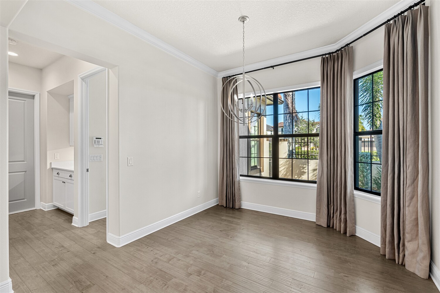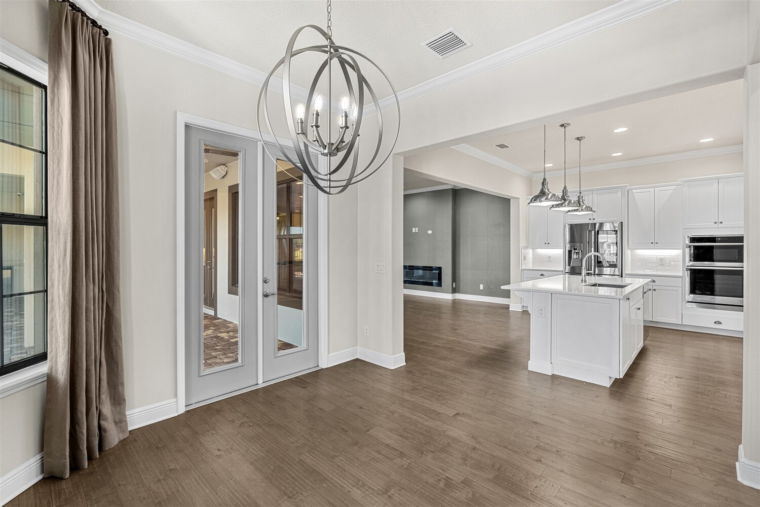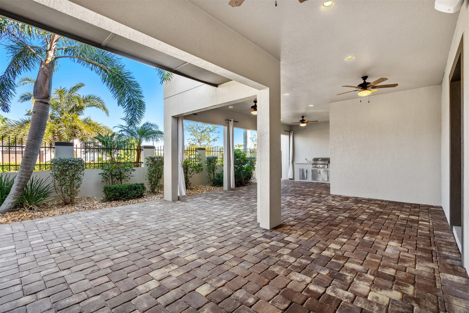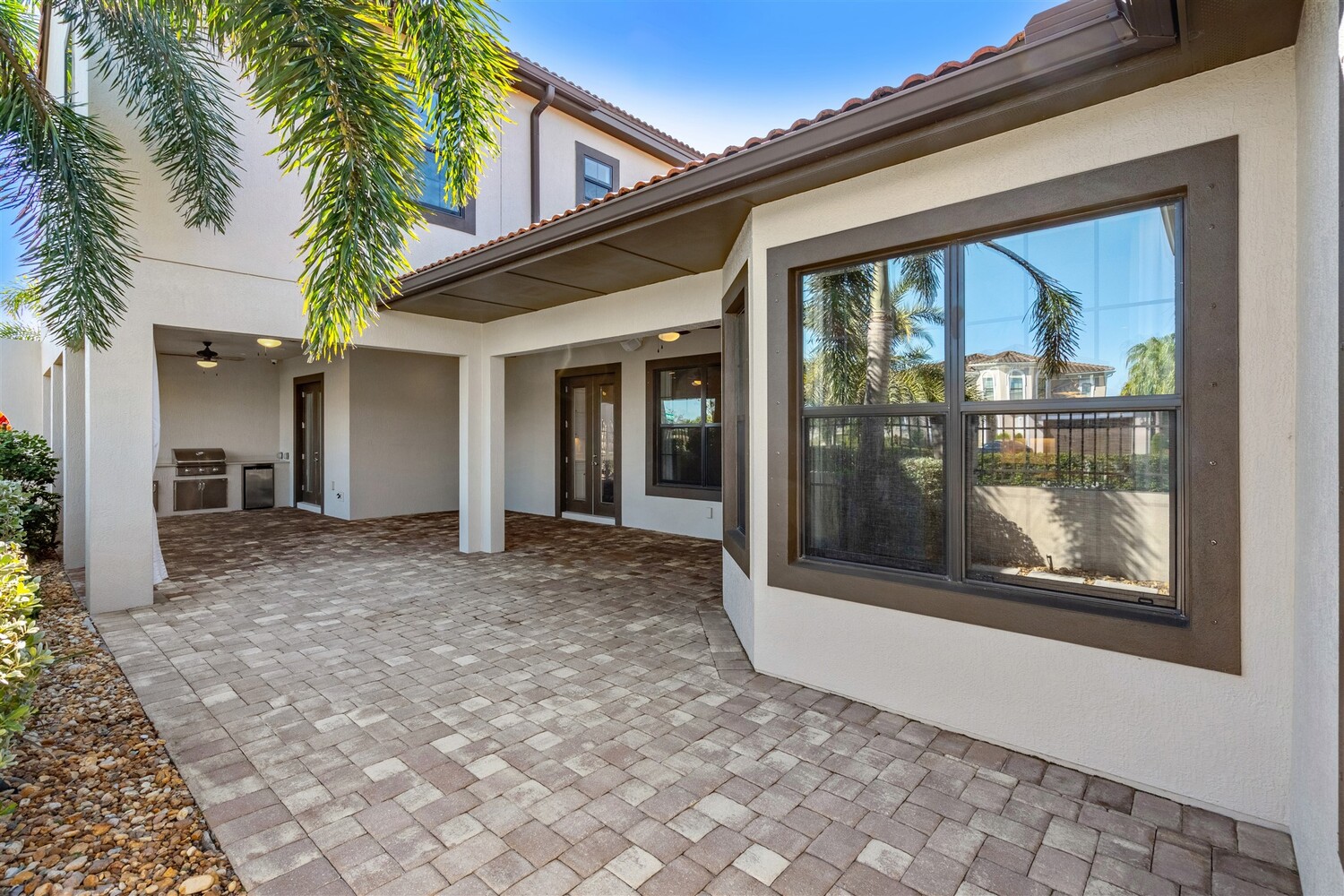 A standout in Viera's sought-after Reeling Park neighborhood, this spectacular 4/5 former model offers over $200K in contemporary upgrades and luxurious living spaces. As you enter through the foyer and pass the office, you're greeted by bright open spaces that draw in soft natural light through the glass front door and windows in the main living spaces. Family gatherings and quiet relaxation are a breeze in the main living space, featuring an electric fireplace and views to the courtyard. The modern kitchen features stainless steel appliances, gas cooktop, vented hood, white cabinetry, quartz counters, and a walk-in pantry. Step outside through the French doors to find a breezy, covered retreat equipped with paver flooring and a summer kitchen, perfect for summertime entertaining. The first-floor primary suite includes an incredible walk-in closet and a spa-like ensuite bathroom with glass and tile shower and soaking tub. . Upstairs, enjoy function and flexibility with three additional bedrooms that can easily be used as workspaces, home gyms, or a bonus room. You'll find plentiful storage options throughout. A generous 2-car garage with epoxy floors offers room for all the toys. Viera carefree living is waiting for you.