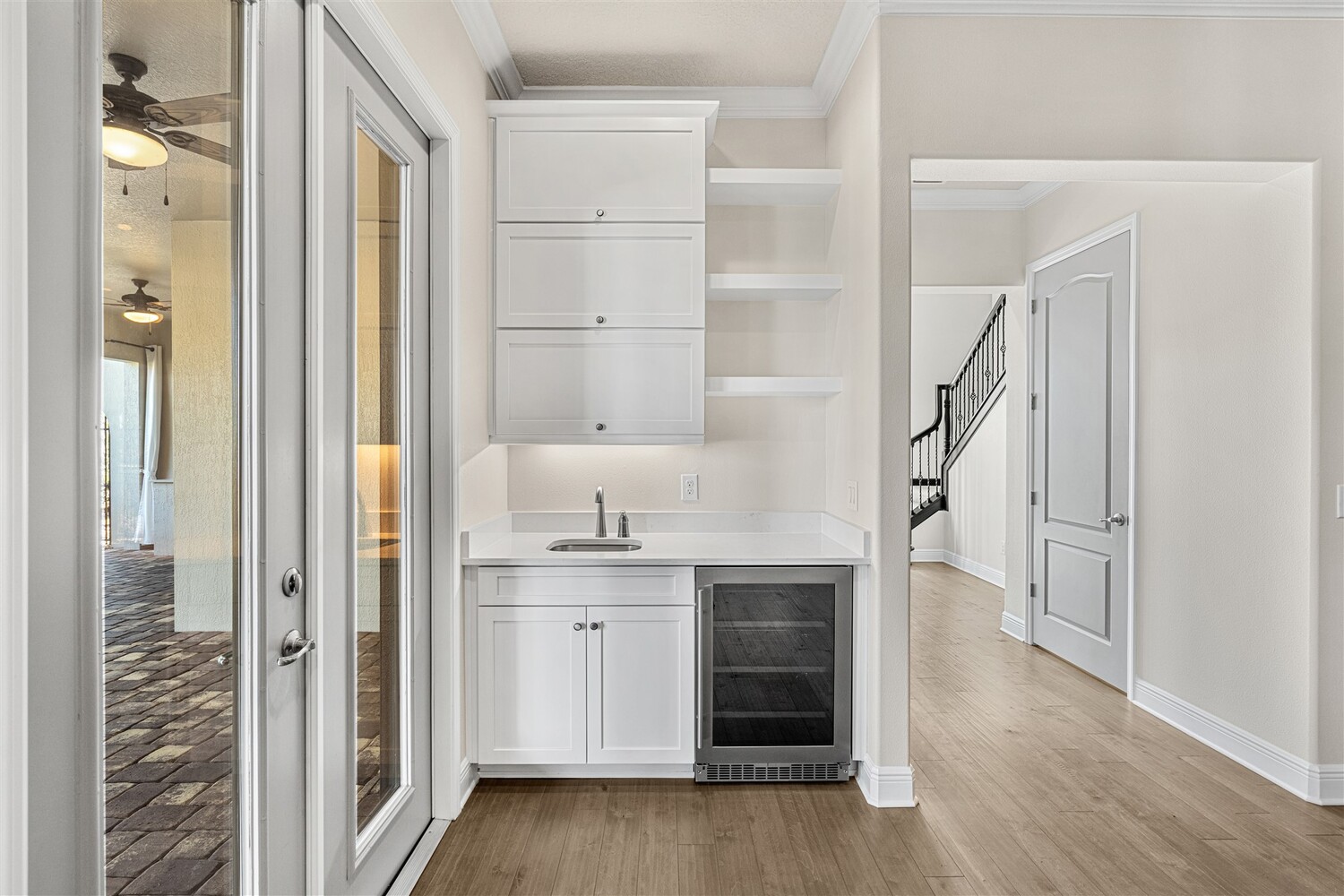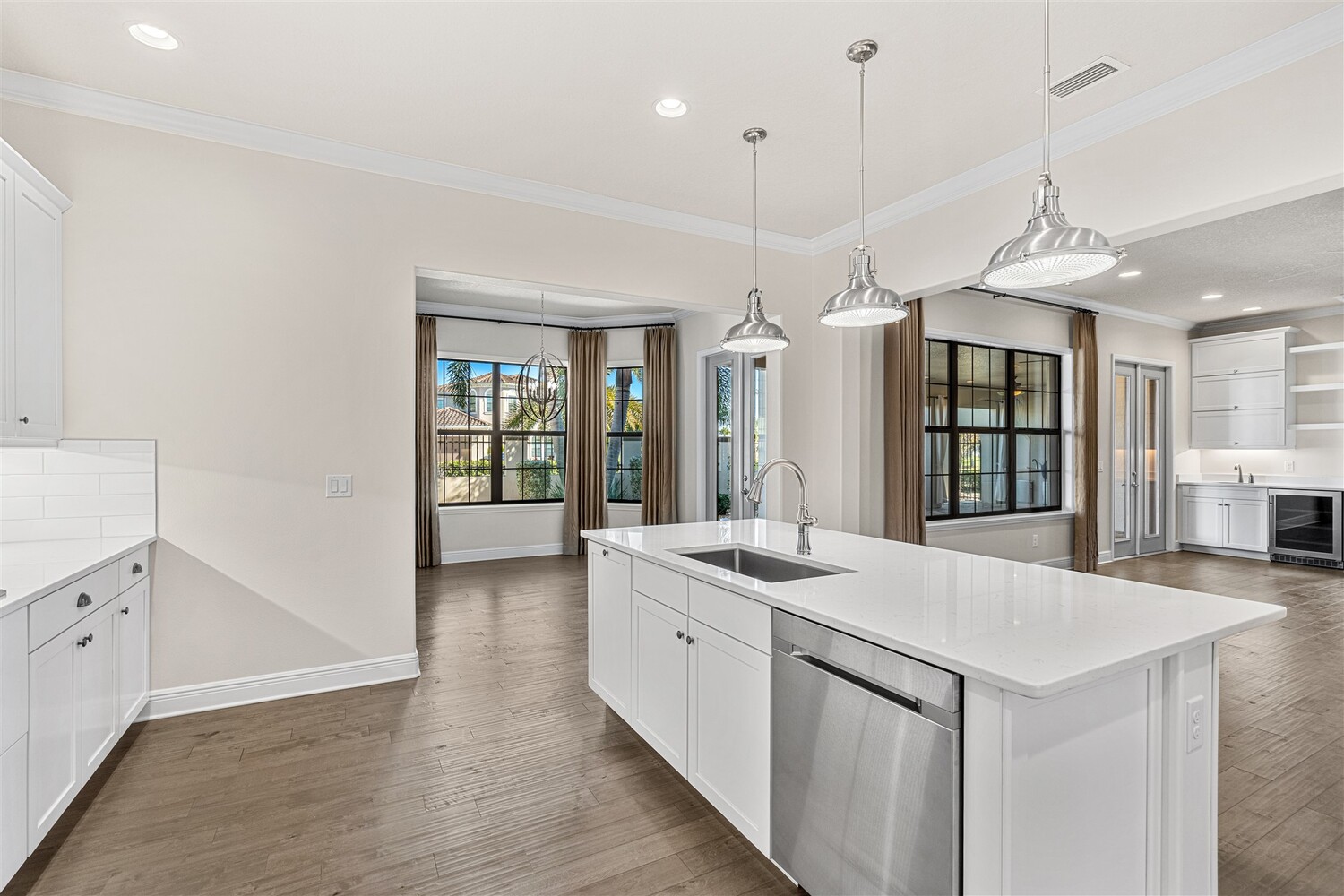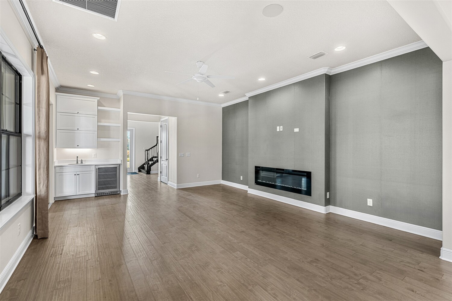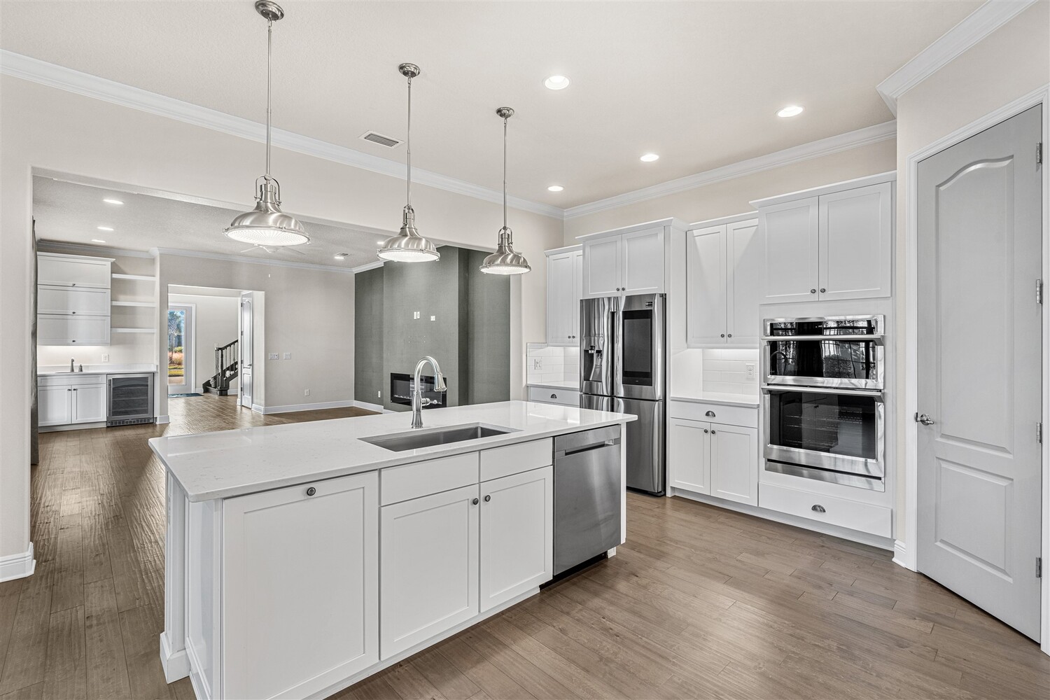 A standout in Viera's sought-after Reeling Park neighborhood, this spectacular 4/5 former model offers over $200K in contemporary upgrades and luxurious living spaces. As you enter through the foyer and pass the office, you're greeted by bright open spaces that draw in soft natural light through the glass front door and windows in the main living spaces. Family gatherings and quiet relaxation are a breeze in the main living space, featuring an electric fireplace and views to the courtyard. The modern kitchen features stainless steel appliances, gas cooktop, vented hood, white cabinetry, quartz counters, and a walk-in pantry. Step outside through the French doors to find a breezy, covered retreat equipped with paver flooring and a summer kitchen, perfect for summertime entertaining. The first-floor primary suite includes an incredible walk-in closet and a spa-like ensuite bathroom with glass and tile shower and soaking tub. . Upstairs, enjoy function and flexibility with three additional bedrooms that can easily be used as workspaces, home gyms, or a bonus room. You'll find plentiful storage options throughout. A generous 2-car garage with epoxy floors offers room for all the toys. Viera carefree living is waiting for you.