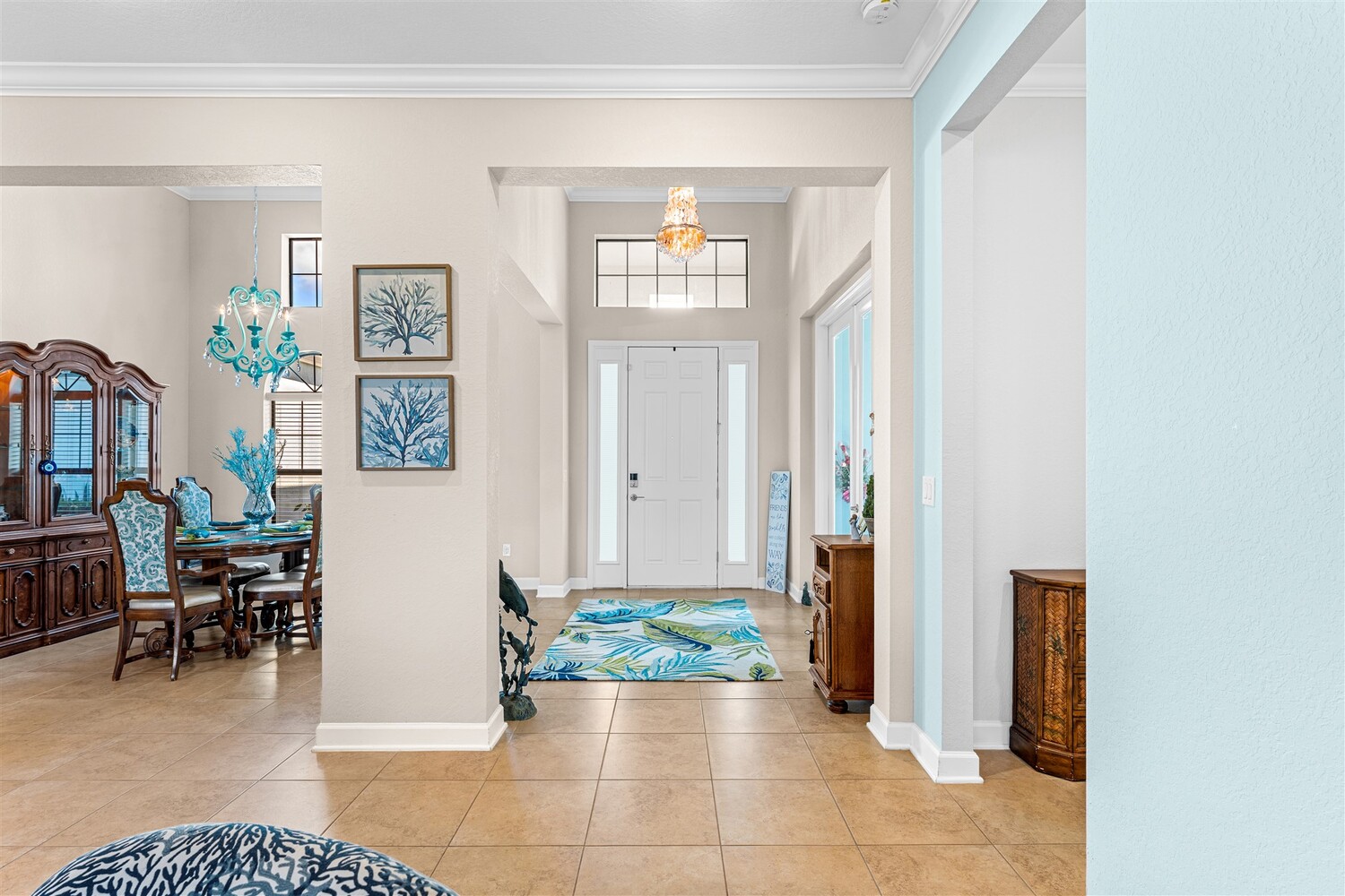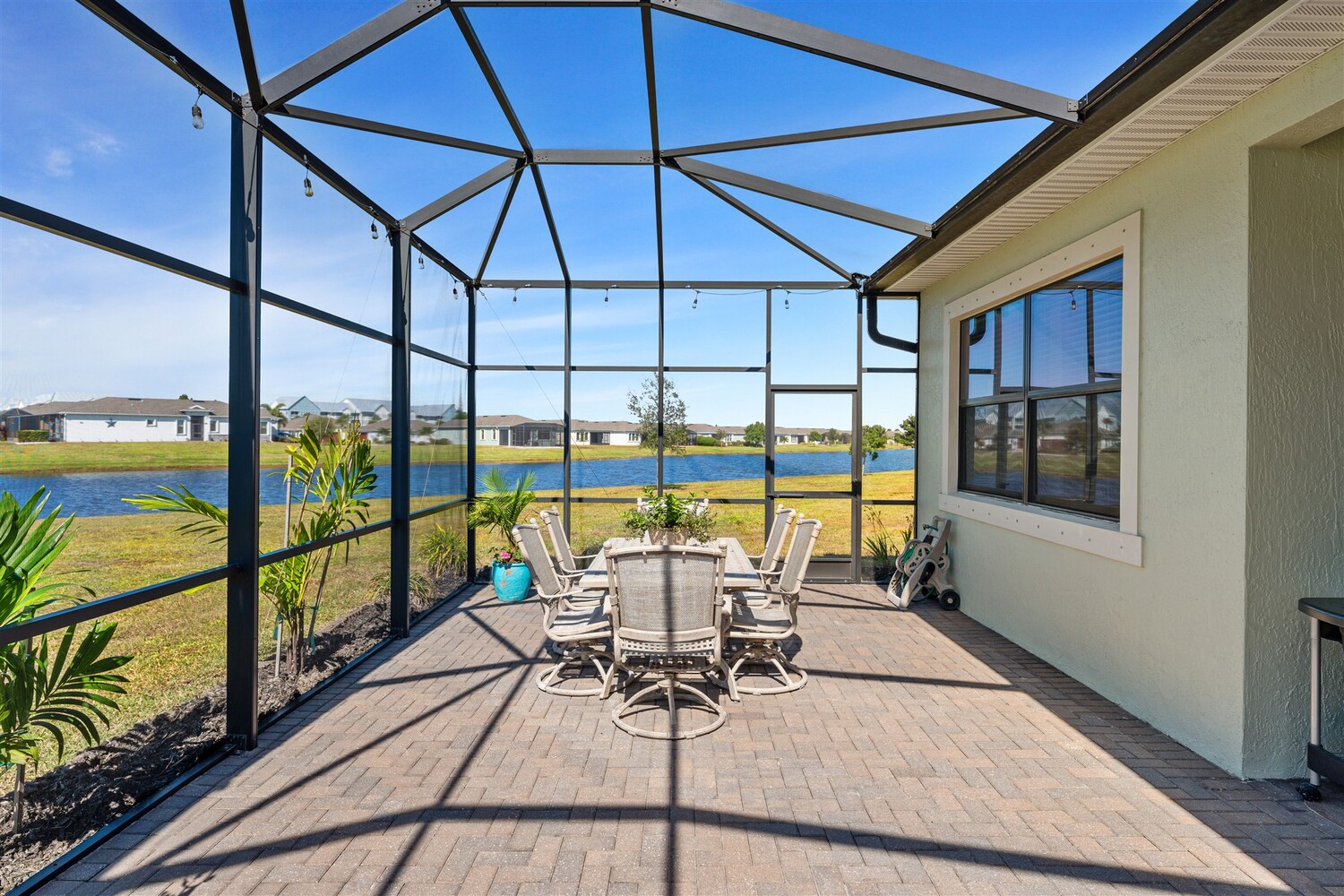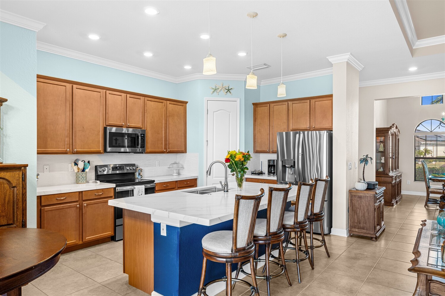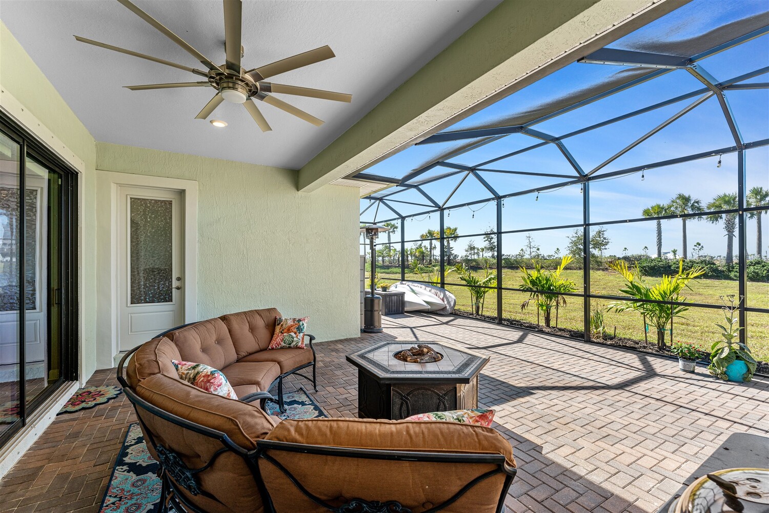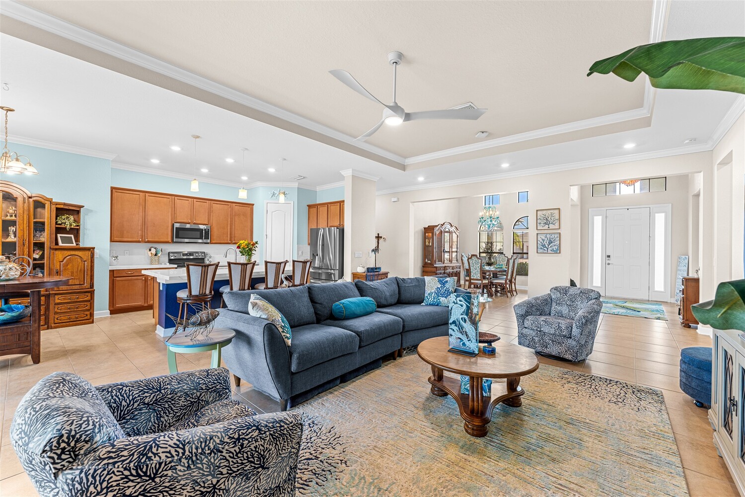 Situated on a .47-acre lot in Bridgewater, Viera's prime 55+ community, this rare sought-after Boretto plan has 3 bedrooms plus a study w/ glass doors and closet, 3 baths, garages for 3 cars and includes a front courtyard flanked by a two-car garage and a separate one car garage! Imagine having two sealed paver driveways! Must have features include tile throughout, 8' doors, tray ceilings, crown moldings, and four sliders that lead to an expanded screened lanai! The gourmet kitchen delights with stunning newer designer quartz kitchen counters, enlarged island w/disposal button and touch faucet, upgraded refrigerator and d/w, and custom shelves in pantry. Enter primary bedroom through double doors into a true retreat with luxury bath w/tub and separate tile shower, tray ceiling, walk-in closet with dual entries and built-ins! Active 55+ gated community offers a resort style clubhouse with heated pool/spa, fitness center, movie theater, tennis & pickleball courts and HOA does lawncare