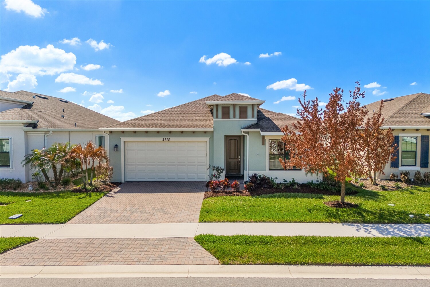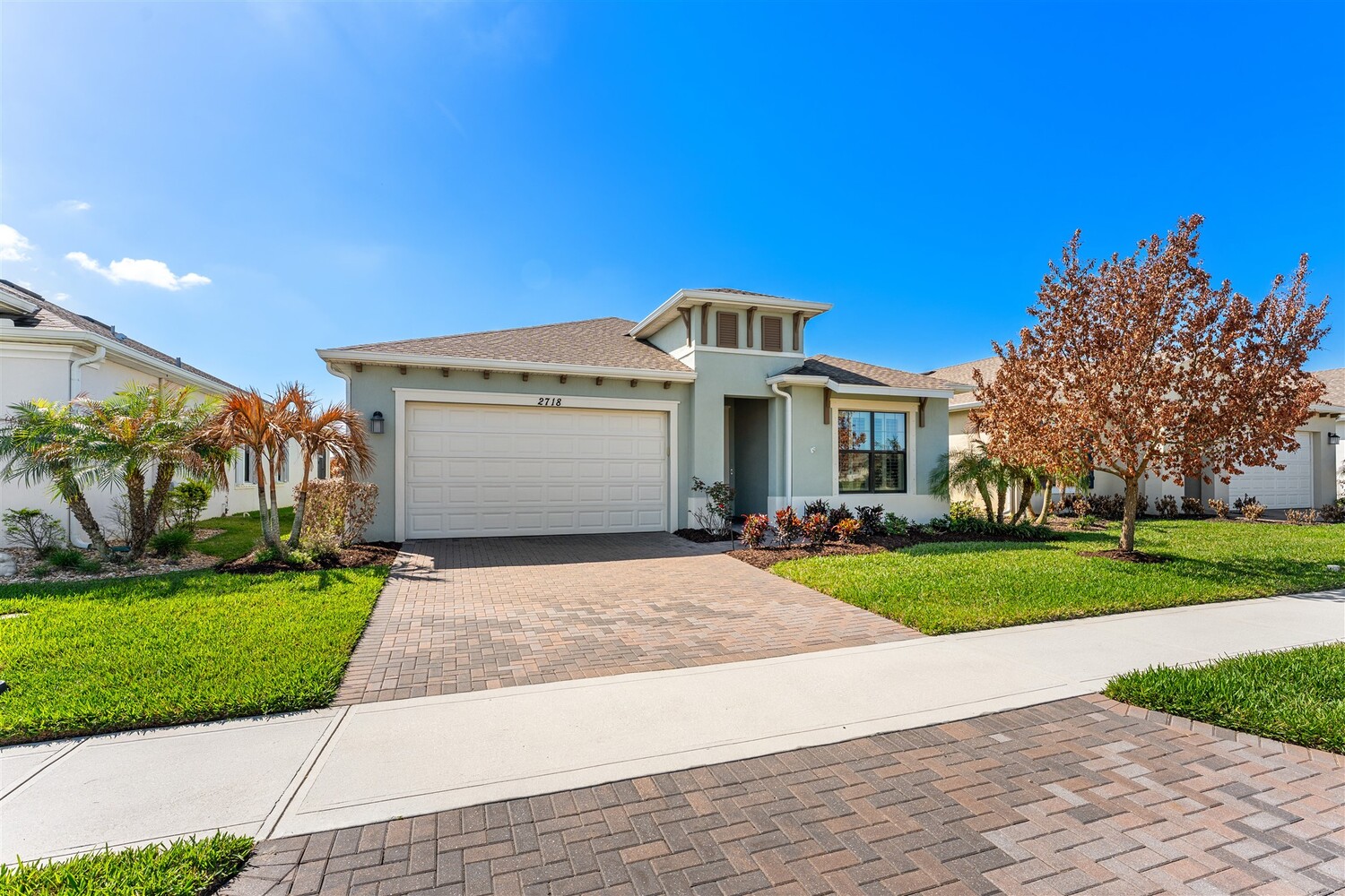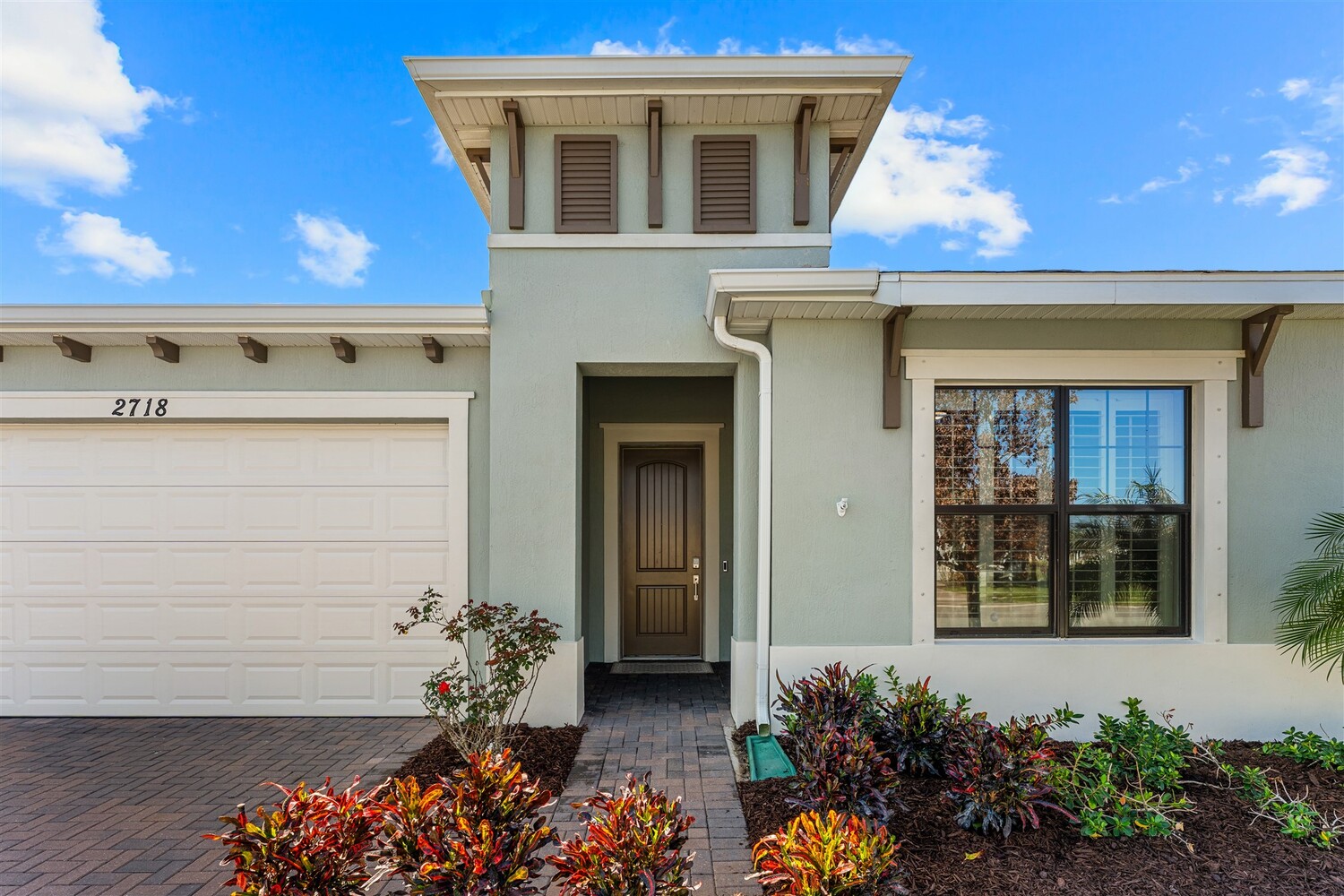 Enjoy waterfront views from this airy 3-bedroom, 4-bath home in the gated 55+ community Bridgewater at Viera. A den/flex room with double doors and closet can easily serve as a fourth bedroom. The kitchen features quartz countertops, stainless steel appliances, and an oversized island that opens to the main living area. Triple sliding glass doors fill the home with natural light and lead to a screened lanai overlooking the water--perfect for enjoying both sunrise and sunset. Interior highlights include ceramic tile flooring, plantation shutters, crown molding, recessed LED lighting, upgraded fixtures, and a laundry room with sink and built-in cabinets. The primary suite offers a custom walk-in closet, zero-entry shower, and dual vanities. Guest bedrooms include custom closets and en-suite baths, one with a walk-in Jacuzzi tub. Resort-style amenities include heated pool, fitness center, tennis, pickleball, bocce, billiards, movie theater. HOA includes lawn care, garbage, gated security.