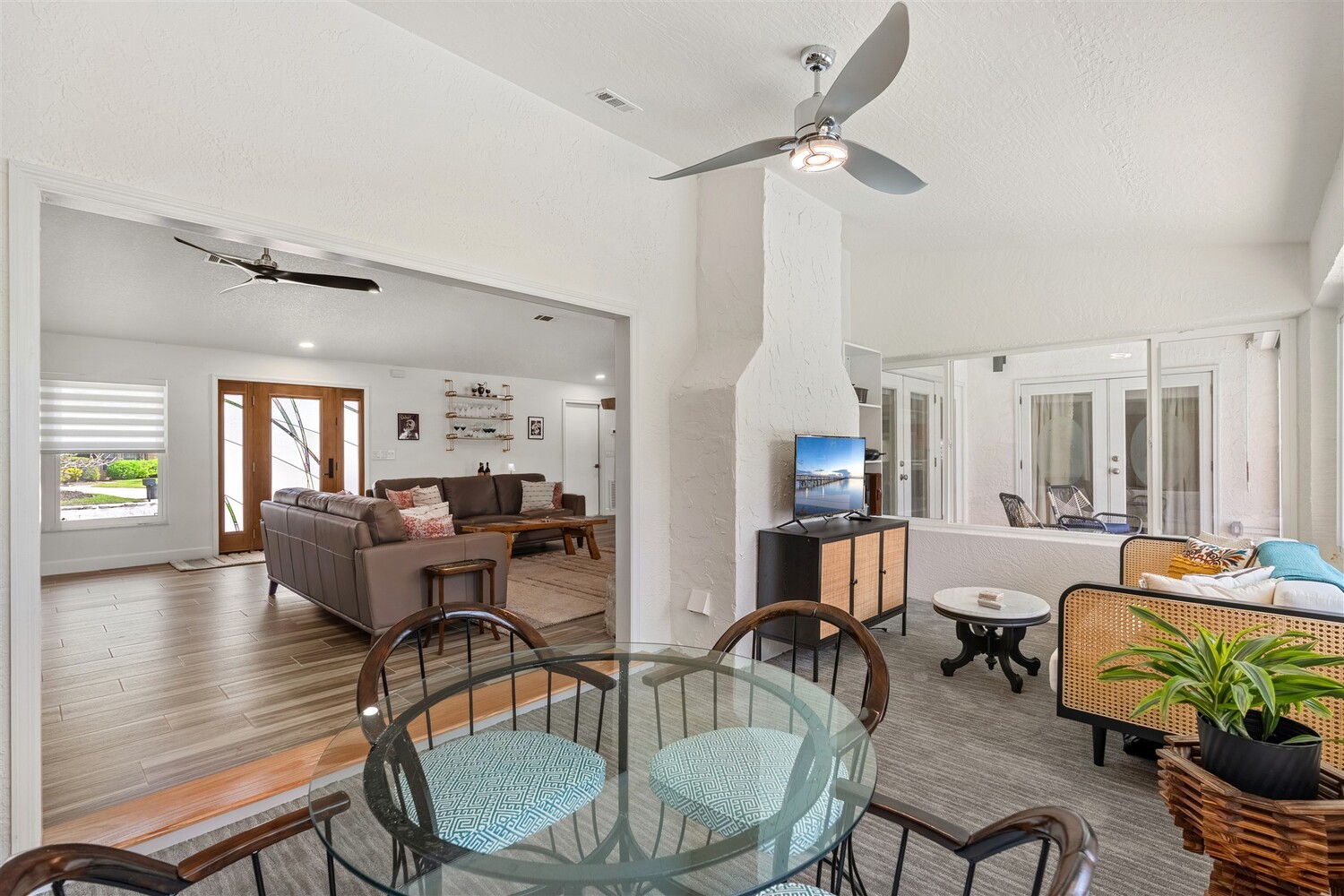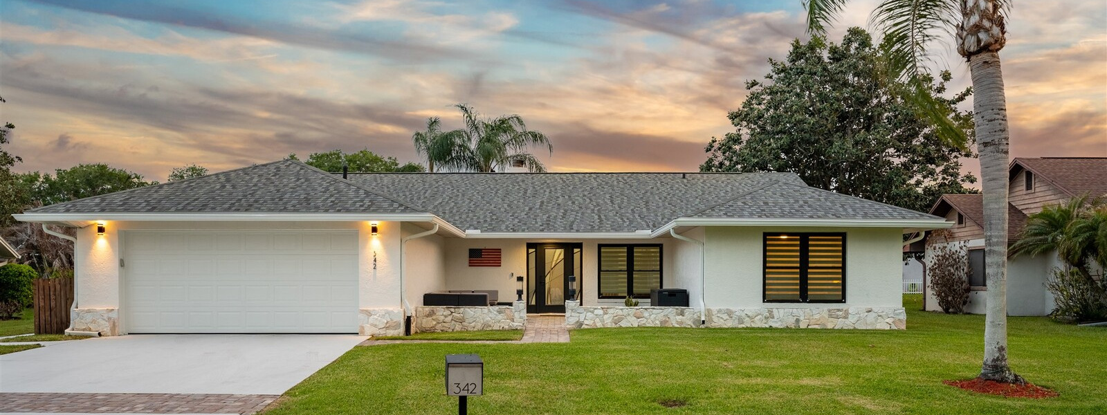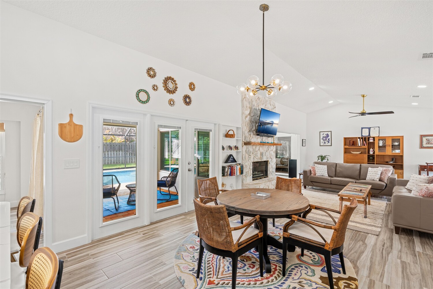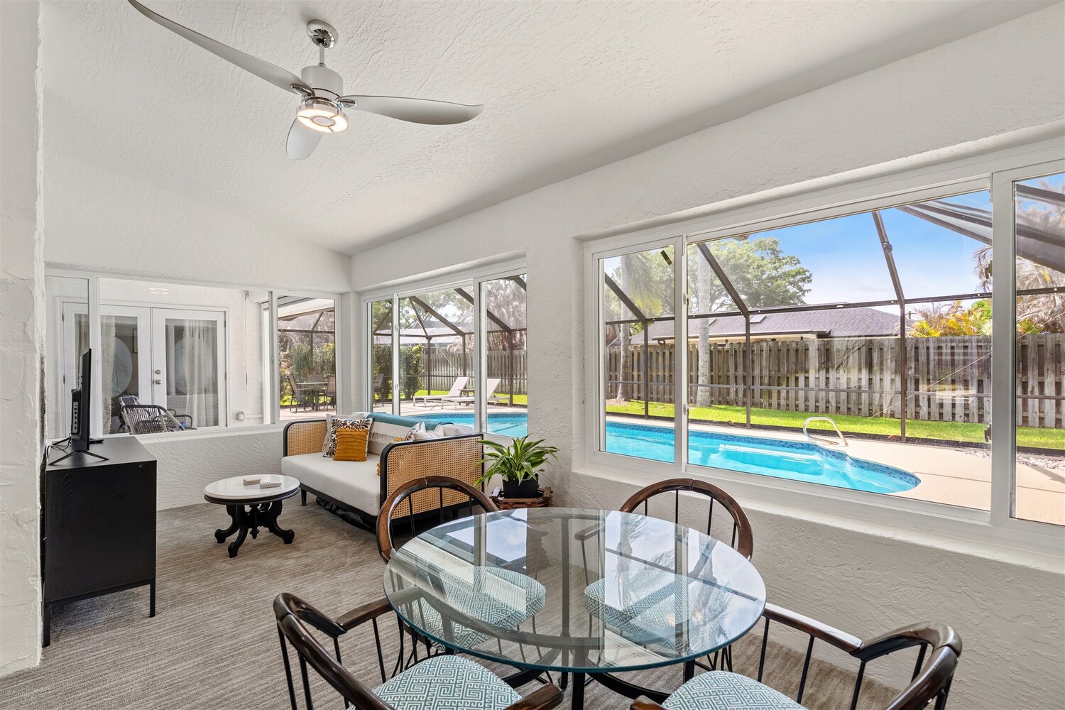 SELLER HAS ASSUMABLE VA MORTGAGE AT 2.25%. Located in the highly sought-after Crystal Lake community of Suntree, this fully remodeled, move-in ready 3-bed, 2.5 bath pool home with a 2-car garage offers the perfect combination of modern upgrades, thoughtful design, and long-term peace of mind. From the moment you arrive, the charming paved front courtyard creates a warm and inviting entry, setting the tone for the quality found throughout. Inside, the open floor plan is filled with natural light and enhanced by new flooring throughout, updated baseboards, recessed LED lighting, and designer ceiling fans. The spacious living area features a cozy gas fireplace and flows seamlessly into the dining and kitchen spaces, making it ideal for both everyday living and entertaining. The beautifully updated kitchen serves as the heart of the home, showcasing quartz countertops, new cabinetry, a stylish backsplash, and high-end appliances. A new washer and dryer add convenience, while closets and shades throughout the home provide both functionality and a polished finish. Extensive system upgrades ensure true move-in readiness, including a 2025 roof, 2020 A/C, 2021 hot water heater, and fully updated whole-house plumbing. Additional improvements include new impact windows, garage access door, front door, garage door and roll down hurricane screen on lanai, along with new electrical panel, offering safety, efficiency, and peace of mind. All three bathrooms have been fully upgraded with modern finishes, creating spa-like spaces designed for comfort. Fresh interior and exterior paint--including the garage--further enhances the home's clean, updated aesthetic. Step outside to your private backyard retreat, where a screened-in lanai surrounds the resurfaced pool. Enjoy a newly painted pool deck, gas heater, new chlorinator and pool pump, and LED lighting, along with the added convenience of an electric roll-down hurricane screen for the patio. Updated landscaping and a refreshed sprinkler system complete the outdoor space (with a gas stub out for a summer kitchen), providing both beauty and ease of maintenance. This exceptional home delivers quality, style, and an unbeatable location in one of Suntree's most desirable neighborhoods--offering the very best of Florida living.