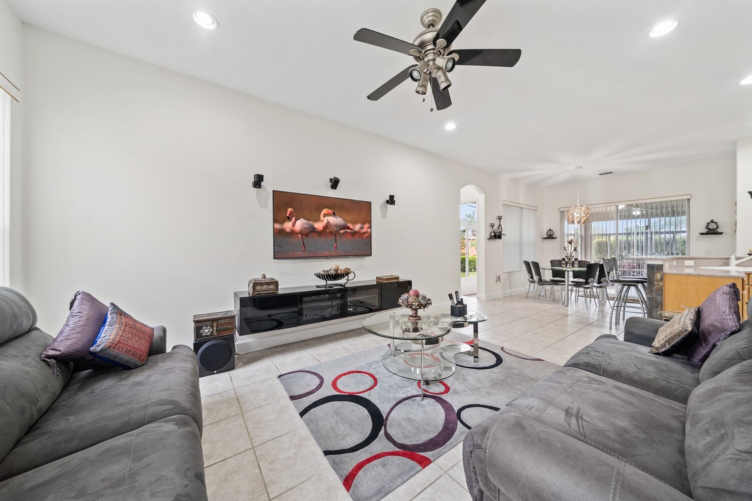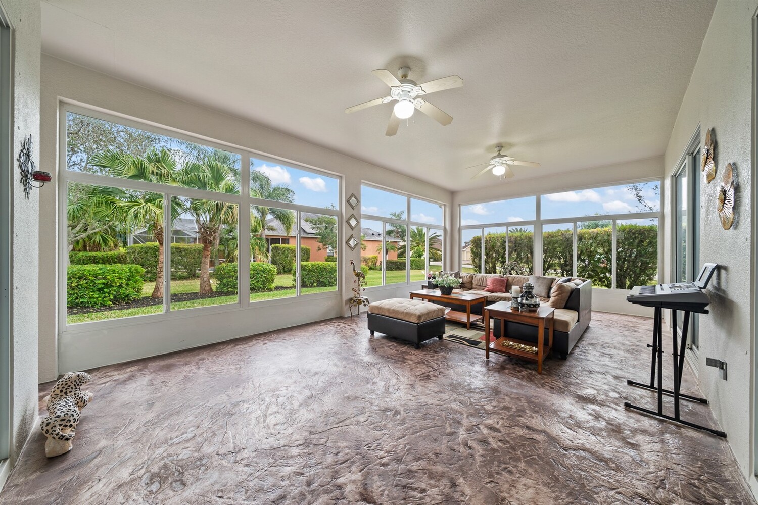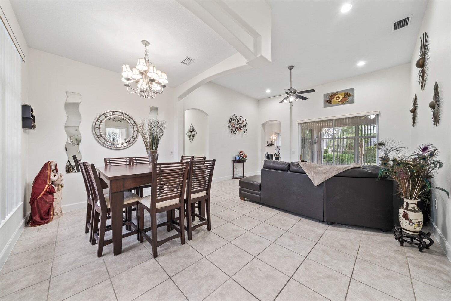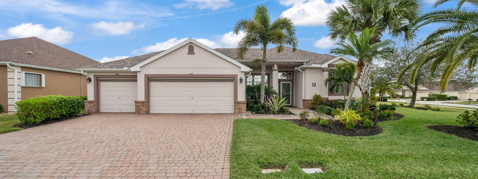Beautiful 4 bedroom, 3 full bath, 3-car garage home located in the fabulous gated 55+ community of Heritage Isles. This light and bright home features high ceilings and tile flooring throughout the main living areas. The open kitchen with solid-surface countertops overlooks the spacious family room and breakfast nook, perfect for everyday living and entertaining. Enjoy the super Florida room, ideal for relaxing or hosting guests. The primary suite offers sliders to the Florida room, two walk-in closets, and a private bath with double vanities, garden tub, and separate shower. Split bedroom floor plan provides excellent privacy. Convenient indoor laundry room. The oversized garage includes screens, making it great for hobbies or enjoying the breeze. Community amenities include a pool, tennis courts, and a large community center with a wide variety of activities.