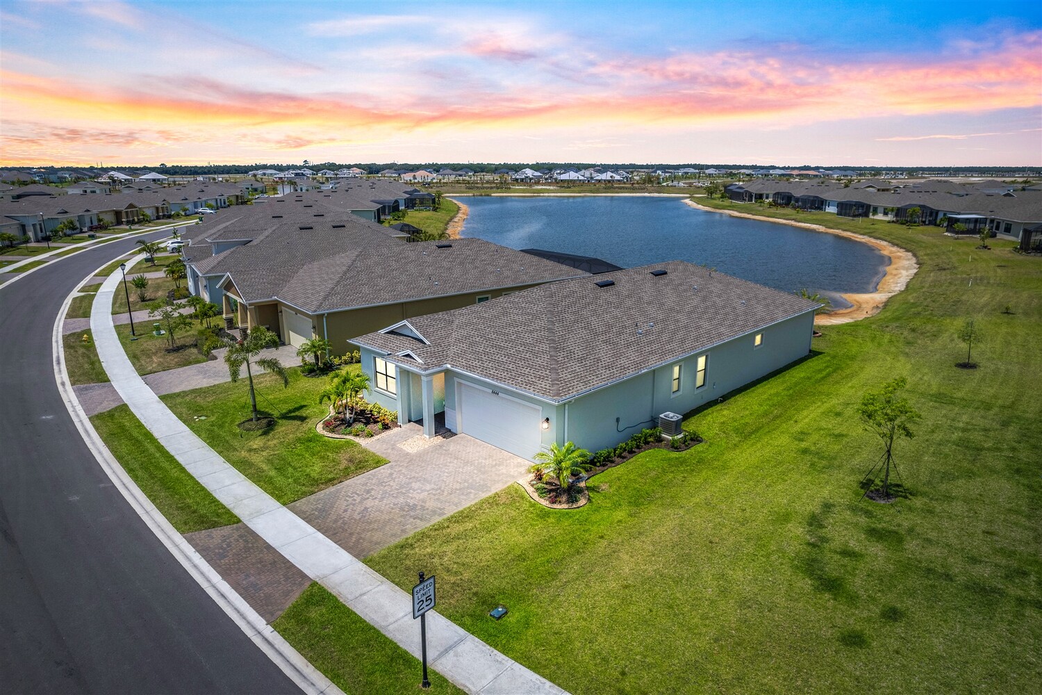 Stunning, two-year-old, 3 bedroom plus study, 3 1/2 bath, waterfront home in Bridgewater, Viera's popular gated 55+ resort style community. All three bedrooms are en-suites, making the Key Largo the most coveted floorplan! This meticulous, barely lived in home is loaded with extras including IMPACT WINDOWS and SLIDERS, plantation shutters and crown molding throughout, tile floors (no carpet!), screened lanai, luxury bath package, LED's in all bedrooms and great room, ceiling fans, pendent lights and 8' doors. Other ''must haves'' include white kitchen cabinets w/glass tile backsplash, quartz counters in kitchen & baths, and laundry room cabinets! Storage galore with 8 closets, plus a walk-in pantry and a 20'X21' garage! Owner added $13,000 in additional landscaping to enhance this impeccable lake front home! Truly turnkey! May also be sold furnished at an added cost. Unbelievable clubhouse w/ heated pool and spa, movie theater, fitness center, coffee lounge, tennis & pickleball.