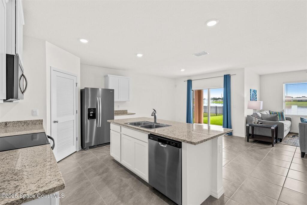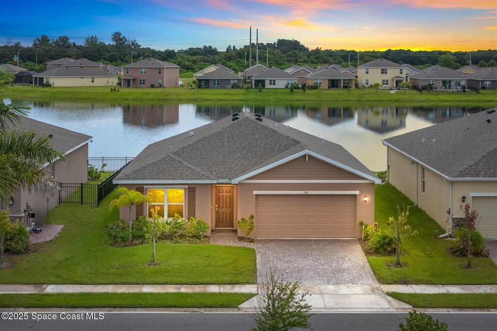 Built in 2024, this like-new home in the Dunes at Heritage Lake offers long views of the lake and contemporary finishes. The Cali model is crafted for sophistication and comfort, blending modern convenience with timeless appeal. The open-concept design is ideal for entertaining, seamlessly connecting the living room, dining area, and kitchen, with plenty of natural light from the oversized windows. All-white kitchen features beautiful quartz counters, stainless steel appliances, a walk-in pantry, and a large island with a breakfast bar. Four generously sized bedrooms offer versatility for every family. The spacious primary suite is your own private retreat, with a gorgeous ensuite bathroom appointed with dual sinks, separate shower, and walk-in closet. Enjoy modern smart-home features for ease of use, electricity savings, and beyond. Just minutes to L3, Northrup, shops and restaurants.