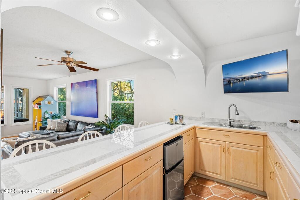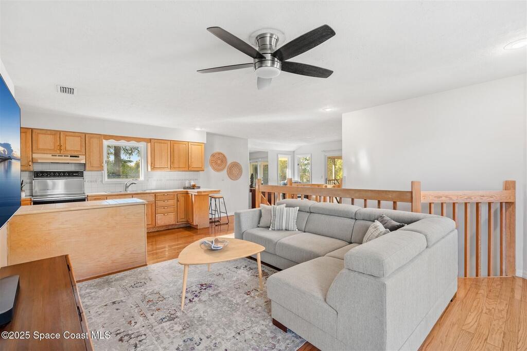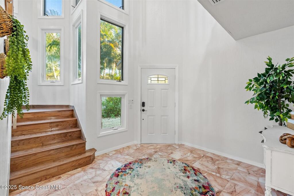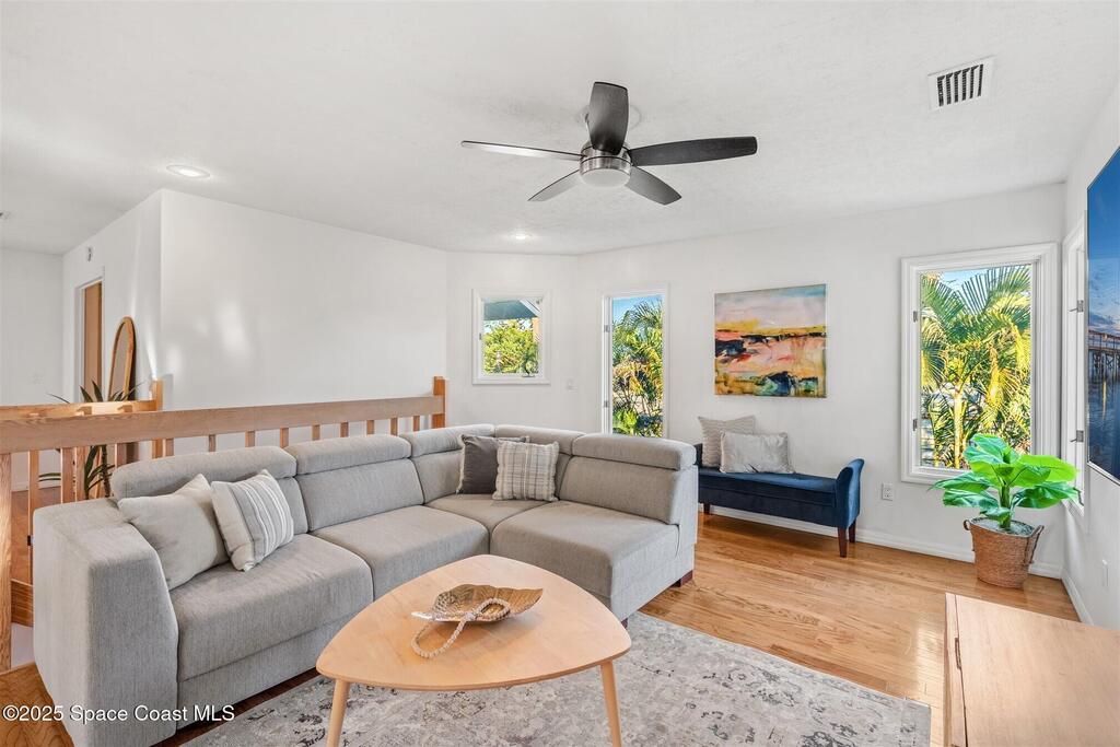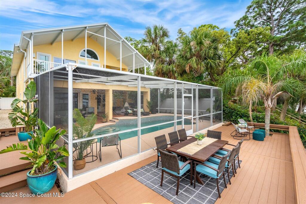 Incredible waterfront opportunity--13 feet above sea level with NO flood insurance required! This spacious 3,960 sq ft home features 4 bedrooms, 3.5 baths, an office, loft, and bonus room, offering versatile space for families or multigenerational living. Boaters will love the covered dock with 6,000 lb boat lift, jet ski lift, and composite decking, all overlooking the Indian River. Enjoy direct river frontage, and easy access to sandbar islands, dockside restaurants, and more. The home features a private in-law suite with its own entrance, kitchen, living room, bedroom, and bath--perfect for guests or rental income. Upstairs, the luxurious primary suite offers floor-to-ceiling windows, private balcony, jacuzzi tub, and walk-in shower overlooking the water. A coral stone fireplace, tankless gas water heater, stainless steel appliances, and new metal roof (2022) add both charm and function. See ''MORE''