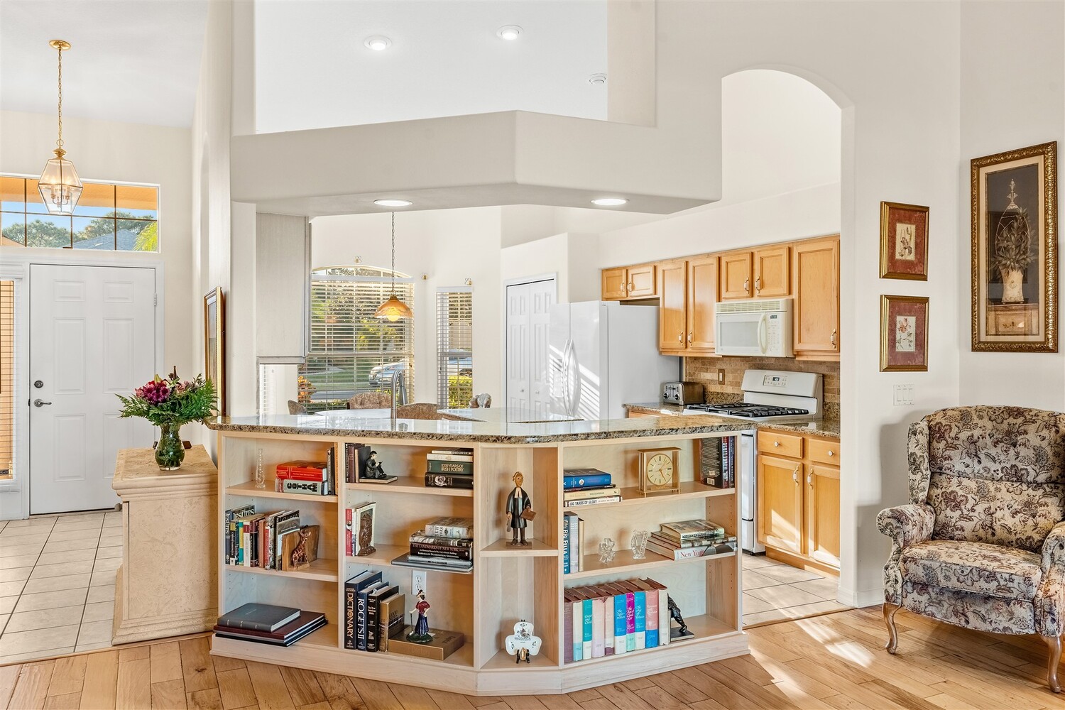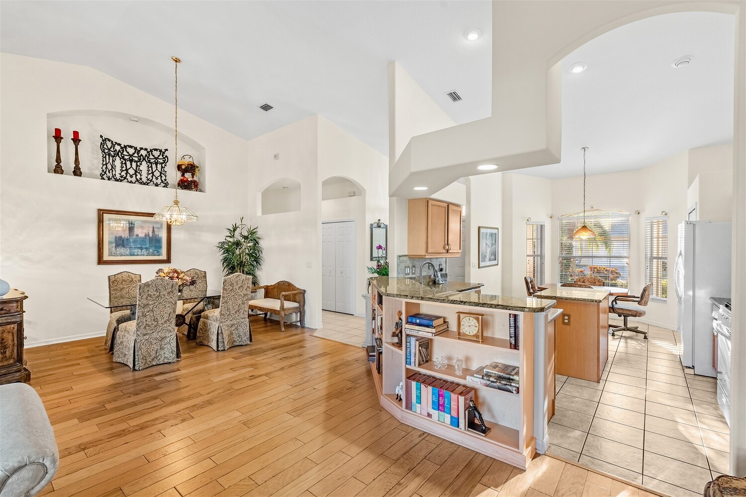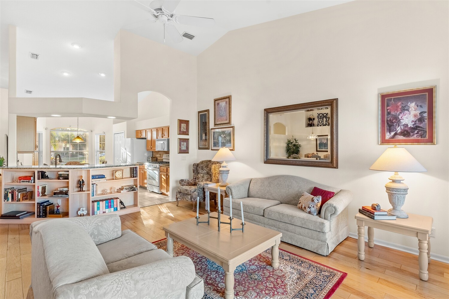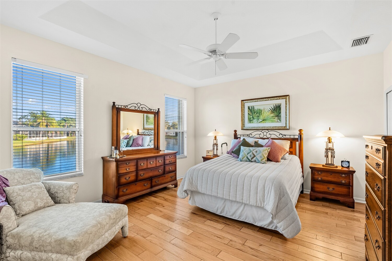 Enter through the community gate of Magnolia Pointe in Suntree and follow around to this 3-bedroom, 2-bath, 2-car garage home with water views! This popular one level floor plan has upgrades that include: granite countertops, new shower in hall bathroom, 140 sq. ft. porch with air (total sq. footage= 1,921), engineered wood flooring by Classic Wood Floors in the main living areas and all bedrooms (no carpet). Enjoy the east facing views and watch the ducks and wildlife on the waterway from the patio, porch, great room or primary bedroom. This half-duplex offers a low-maintenance lifestyle which includes lawn and sprinkler care, roof replacement, exterior painting, exterior insurance and more. A community pool and cabana complete the picture for a great lifestyle in a quiet community near shopping and restaurants. Original owners leaving their much-loved home and community to be closer to children. Roof (2016 by HOA), Water Heater (2014, HVAC (2016)