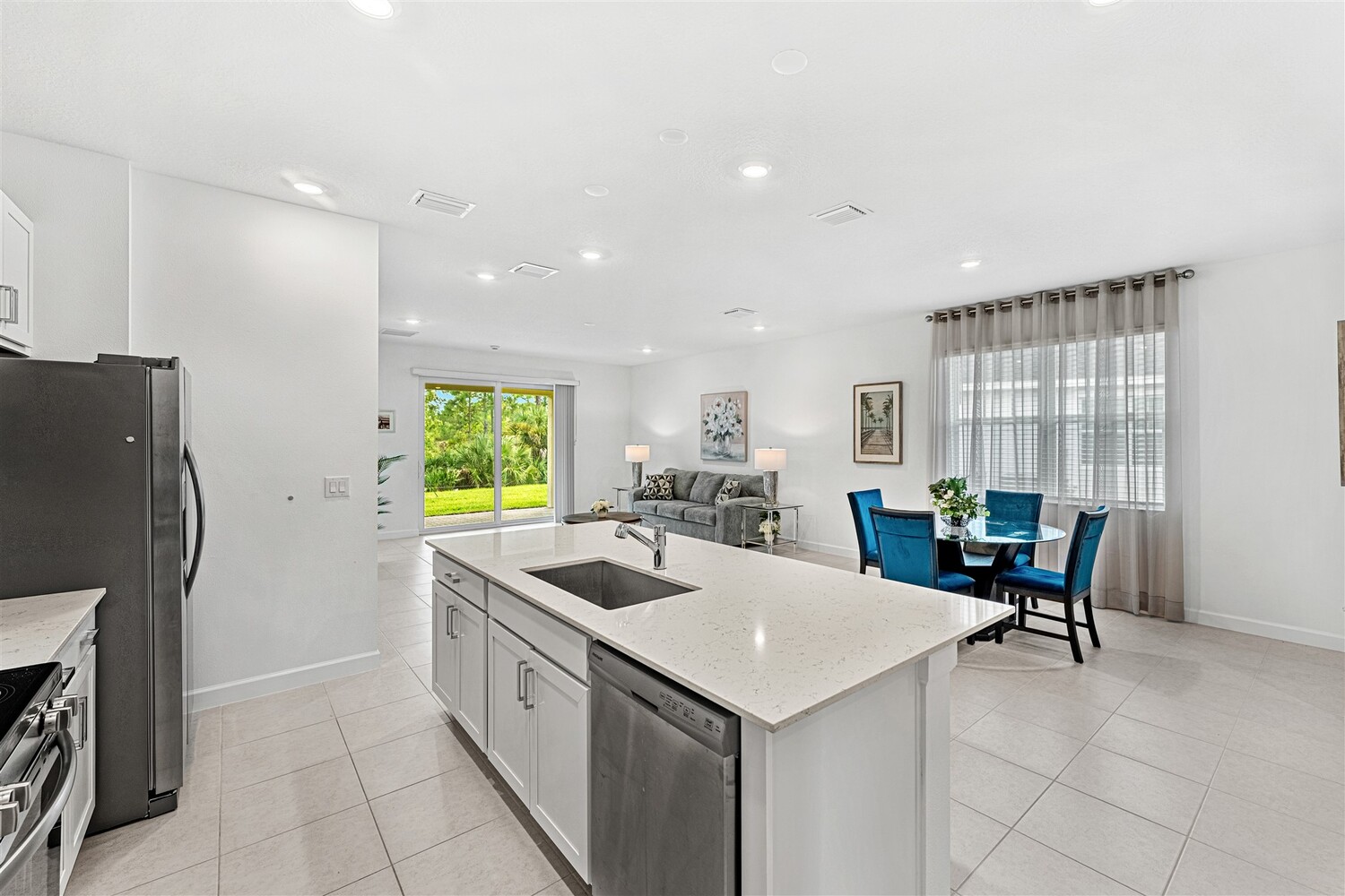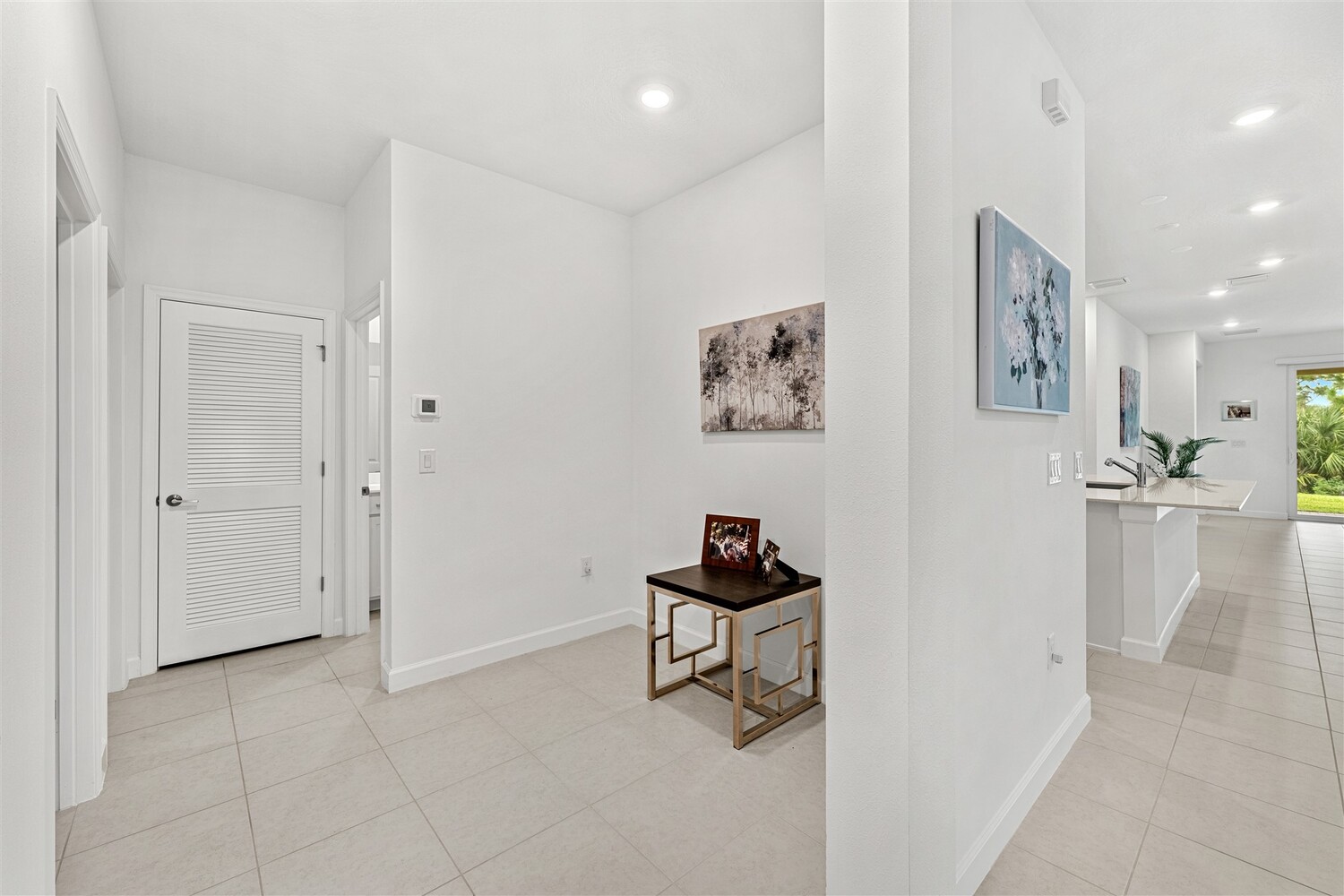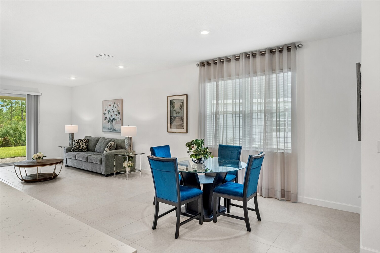 Must See, less than one year old, 1794 sq ft, 3 bedroom plus flex area, 2 bath, 2 car garage home in The Timbers at Everland, the sought after 55+ resort style community in Northwest Palm Bay! Move right in, all the recently purchased FURNITURE stays with the home!! This 2024 built meticulous home backs up to a lush private conservation area and includes IMPACT WINDOWS and SLIDER, which make hurricane season stress free! Must have features including white kitchen cabinets with marble look quartz counters, tile throughout, and window blinds throughout are included in this beautiful home! Unwind at the soon to open (late September 2025) private clubhouse, featuring a large heated pool and spa, fitness room, aerobics studio, card room, dog park, putting green, fishing dock, tennis and pickle ball courts, bocce, and even a movie theater! And the HOA covers your home's lawn care! Short car ride to Atlantic beaches! Close to shopping and dining. One hour drive to MCO, cruise port!