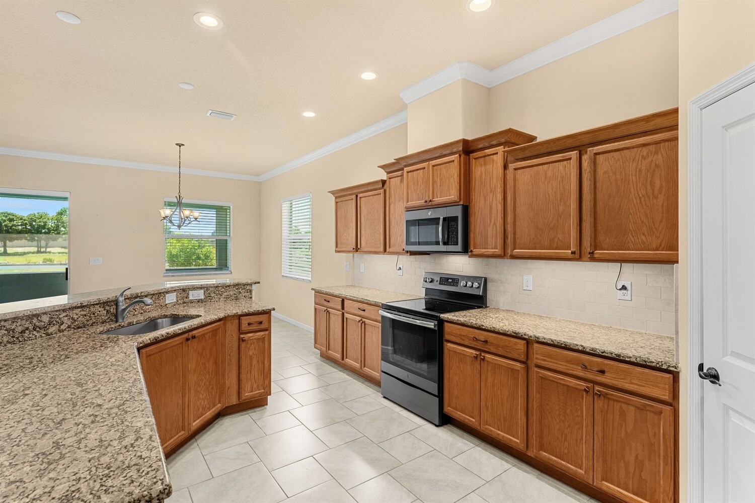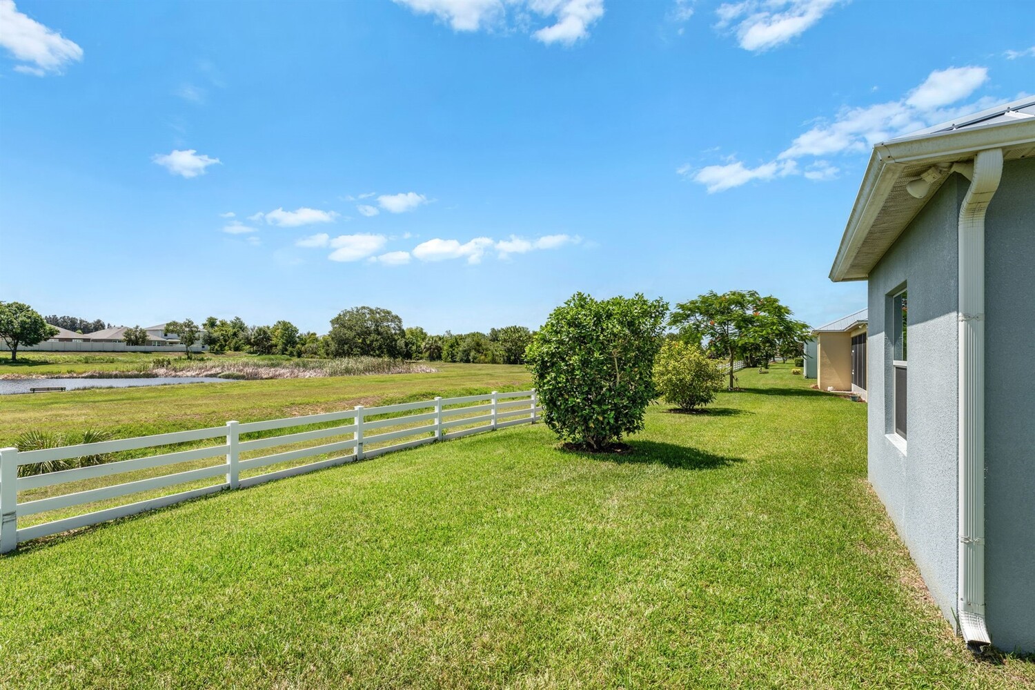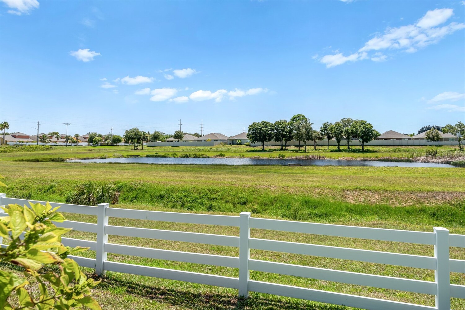 Beautiful home in the gated 55+ community of Alamanda Key! This open floor plan offers a spacious great room and kitchen with granite countertops, stainless steel appliances, and a large screened patio overlooking serene fields and a lake. Tile flooring flows throughout the main living areas. The split bedroom layout includes a primary suite with two closets, double sinks, and a large walk-in shower. Additional features include an inside laundry room and a two-car garage with a unique ramp-style floor. Enjoy community amenities like a clubhouse and pool in this vibrant, active adult neighborhood!