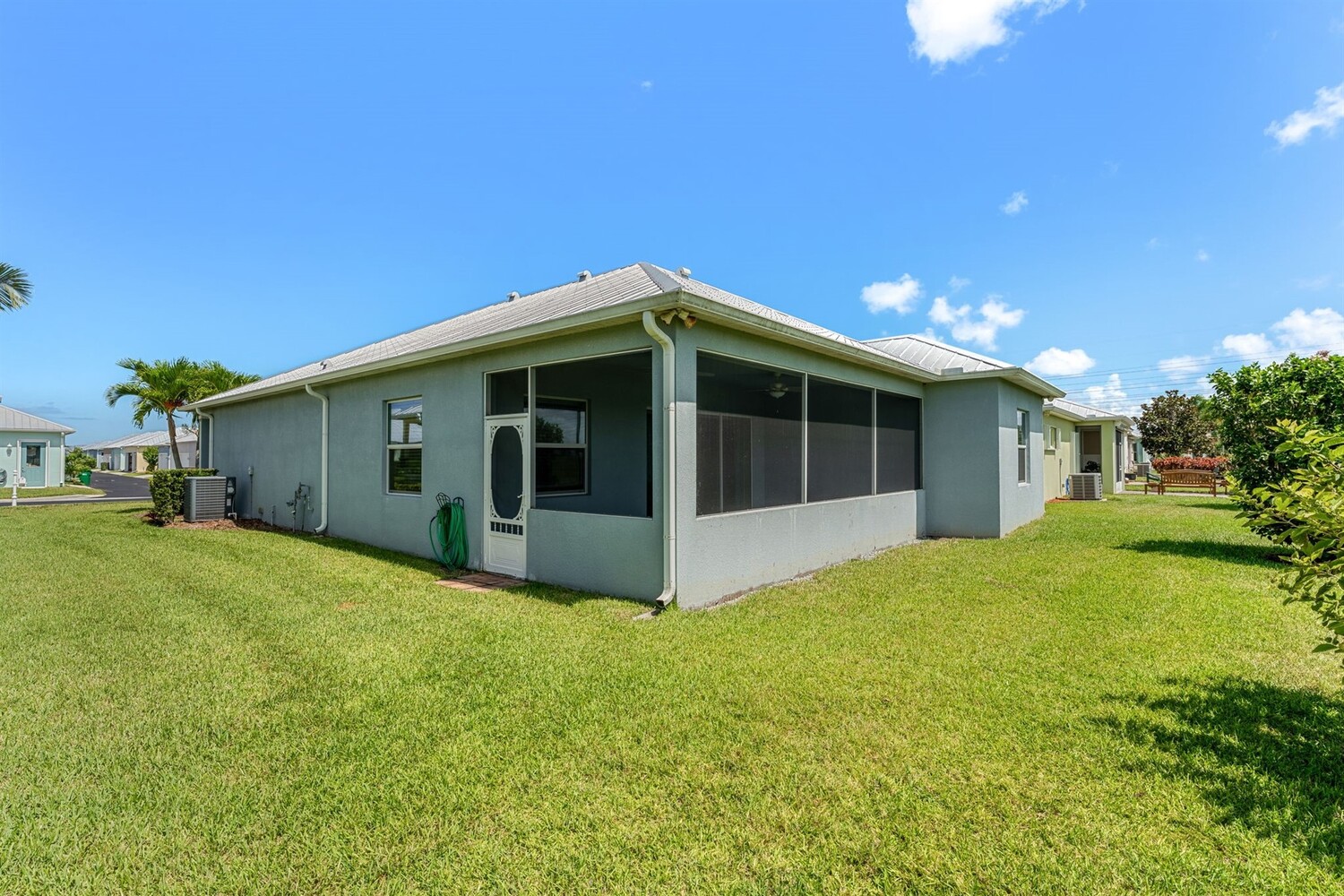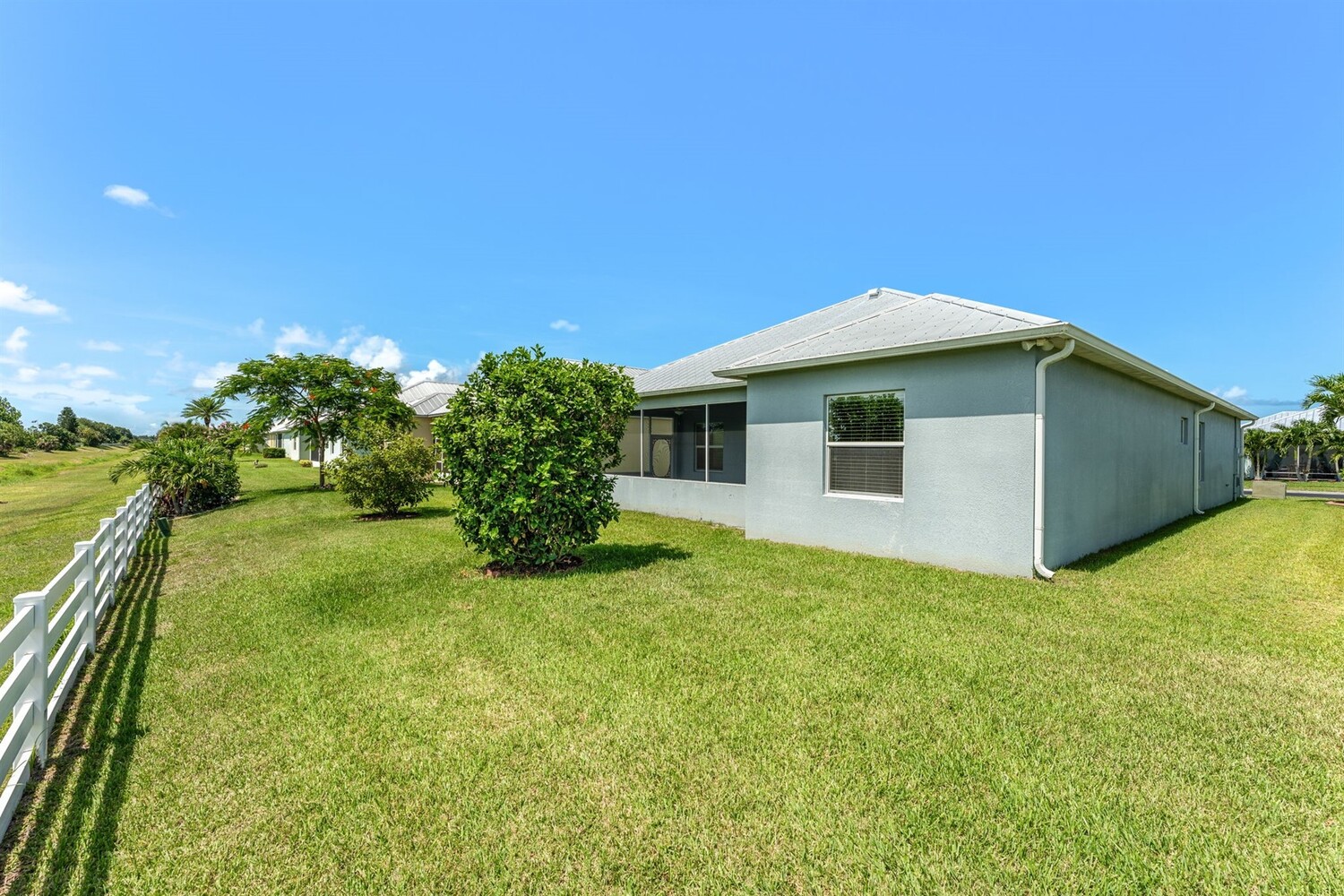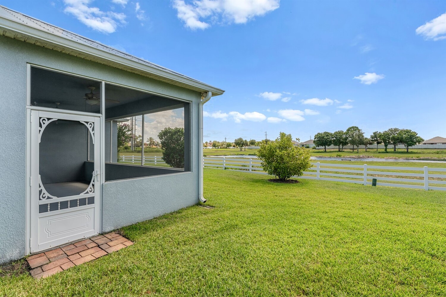 Beautiful home in the gated 55+ community of Alamanda Key! This open floor plan offers a spacious great room and kitchen with granite countertops, stainless steel appliances, and a large screened patio overlooking serene fields and a lake. Tile flooring flows throughout the main living areas. The split bedroom layout includes a primary suite with two closets, double sinks, and a large walk-in shower. Additional features include an inside laundry room and a two-car garage with a unique ramp-style floor. Enjoy community amenities like a clubhouse and pool in this vibrant, active adult neighborhood!
